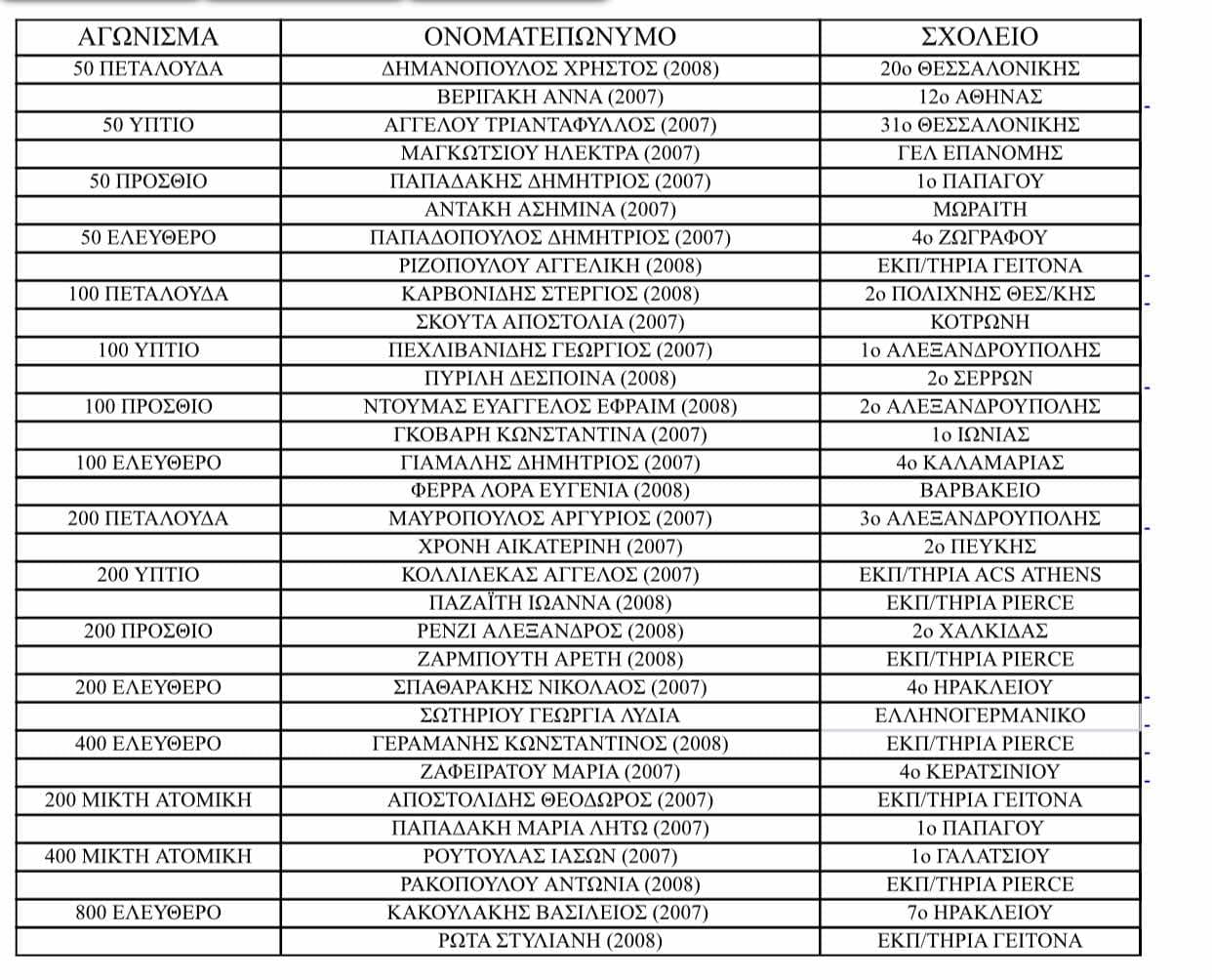 Αύριο ξεκινά το Παγκόσμιο Σχολικό Πρωτάθλημα Κολύμβησης στο Μπαχρέιν, με τη συμμετοχή 32 Ελλήνων κολυμβητών και κολυμβητριών, έτοιμοι να εκπροσωπήσουν τη χώρα μας! Η ομάδα αναχώρησε χθες και βρίσκεται ήδη στο Μπαχρέιν για τις τελικές προετοιμασίες. Παρακάτω ακολουθεί η λίστα με τους αθλητές και τις αθλήτριες που θα αγωνιστούν, το σχολείο που εκπροσωπούν, καθώς και τα αγωνίσματα στα οποία θα συμμετάσχουν.