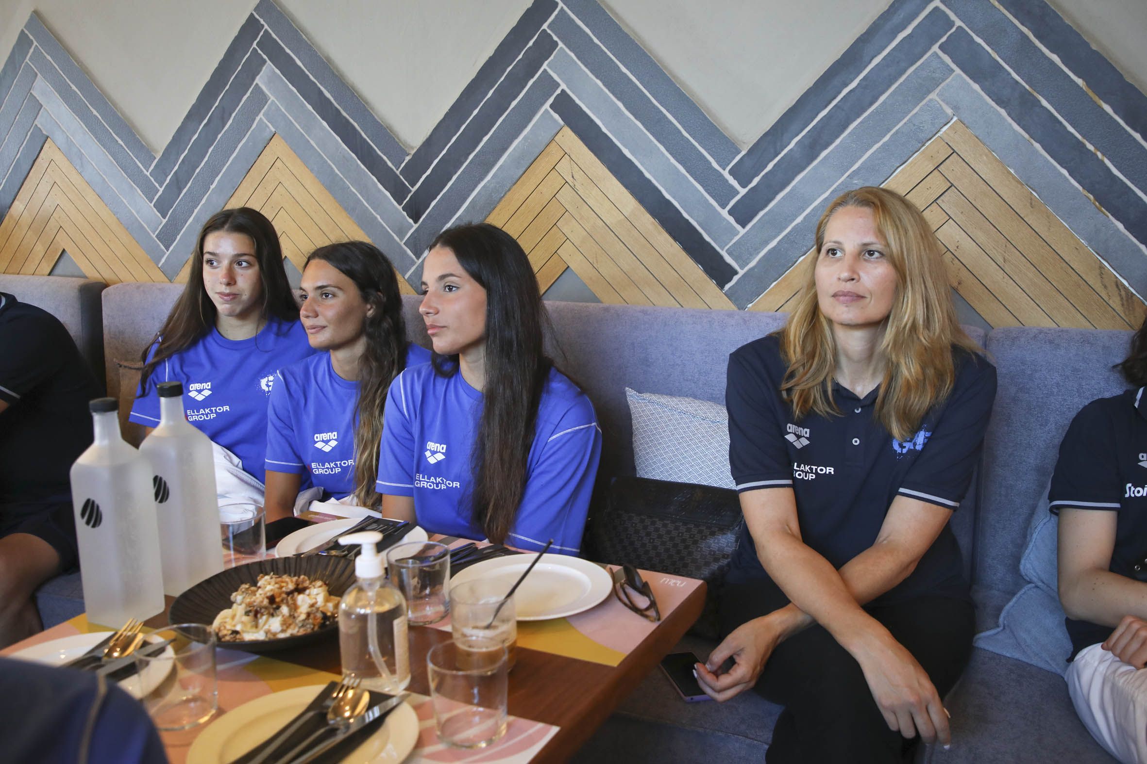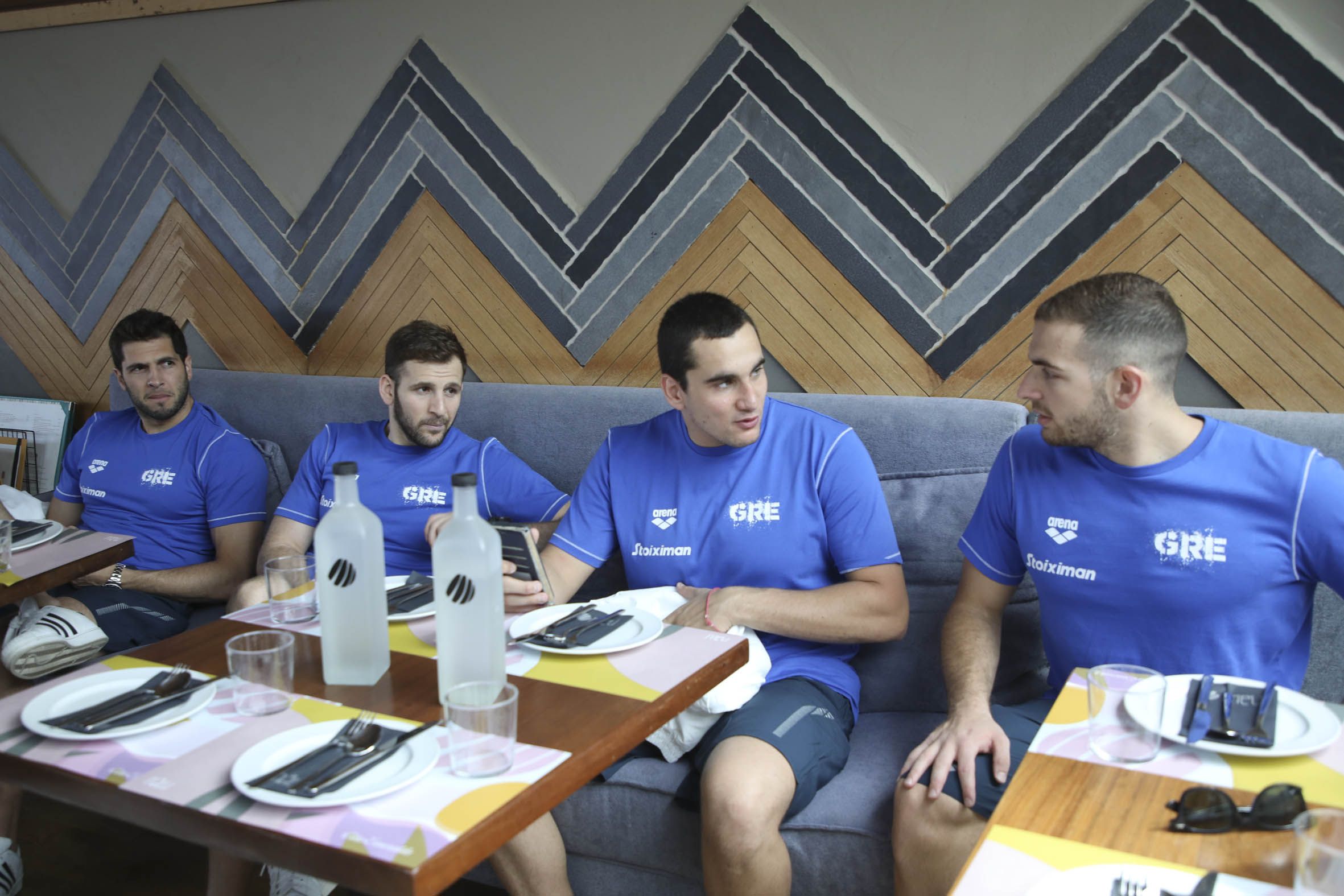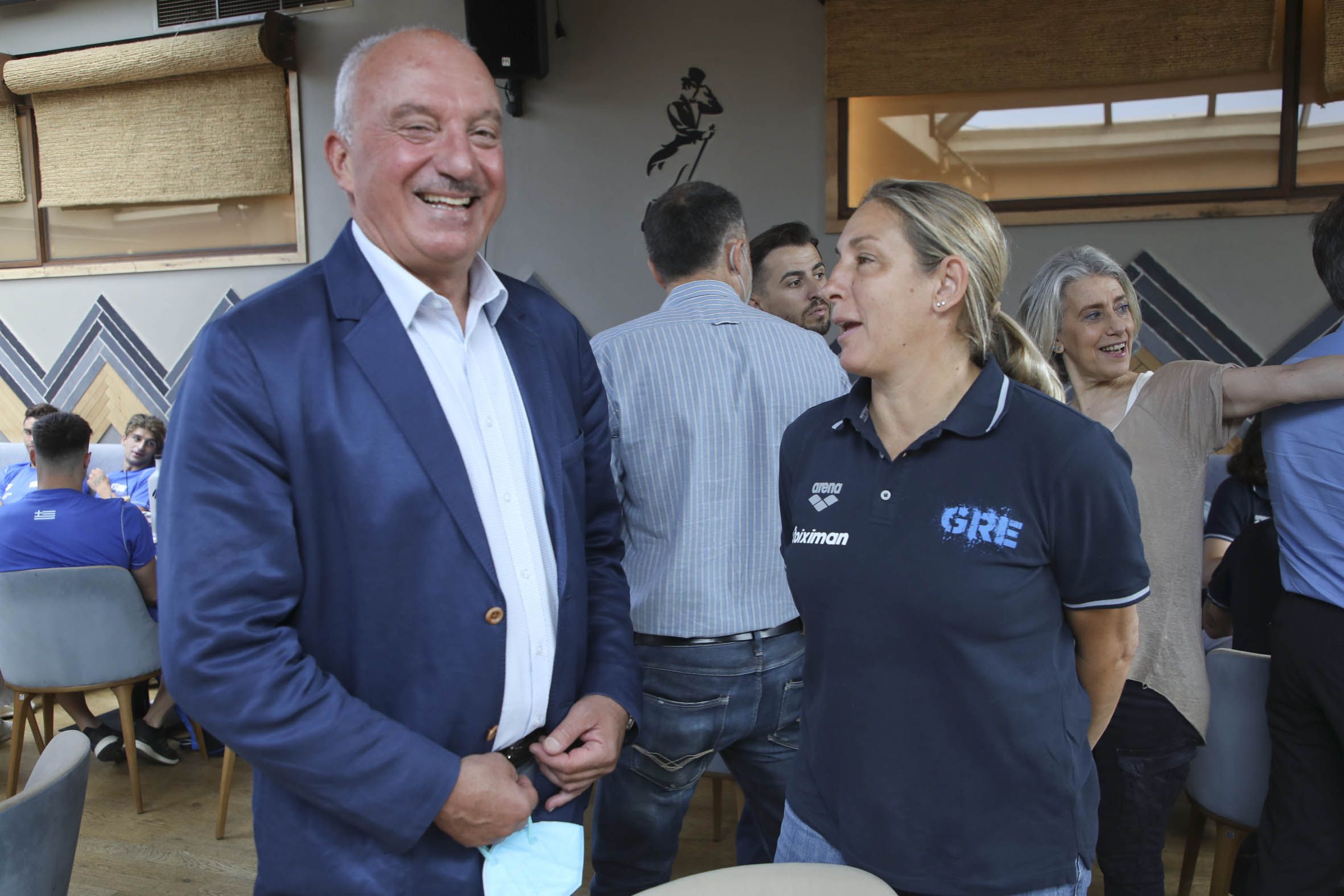 Μαζί τους, ο ομοσπονδιακός τεχνικός Θόδωρος Βλάχος, ο συνεργάτης του Τάσος Σχίζας, ο φυσικοθεραπευτής Αλέξανδρος Κολιάτος, ο τεχνικός αναλυτής Χρήστος Κοδέλλας και ο Α’ Αντιπρόεδρος της ΚΟΕ και υπεύθυνος της ανδρικής υδατοσφαίρισης Γιώργος Αφρουδάκης (αρχηγός αποστολής).