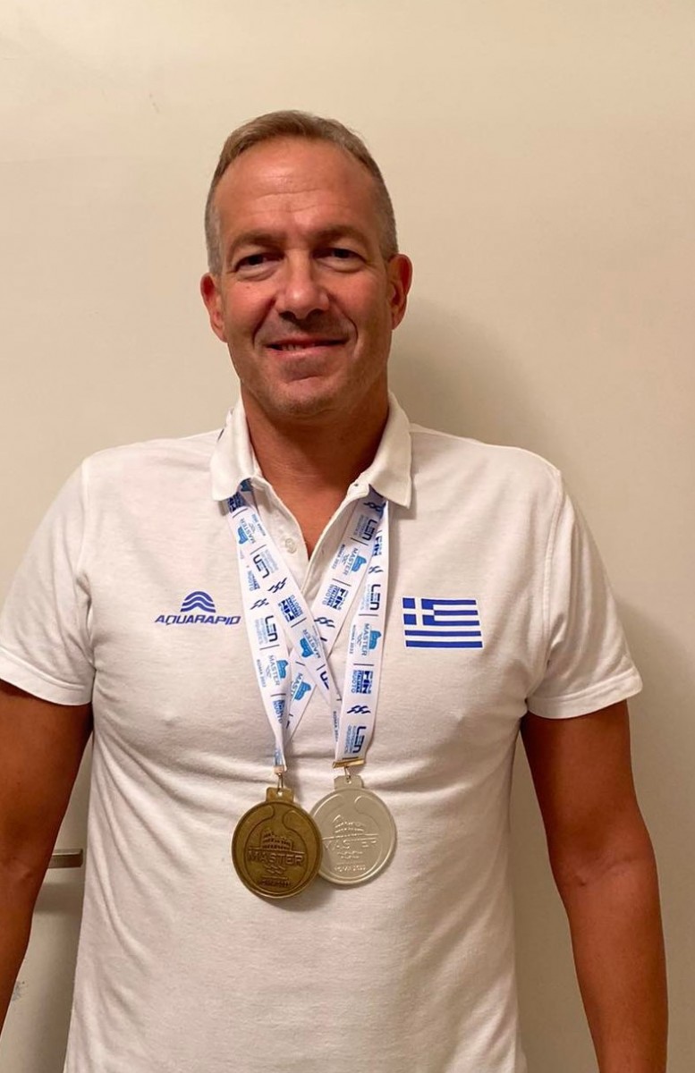 Ο Μάνος Χουρδάκης, 51 ετών, με καταγωγή από το Ηράκλειο, κατέκτησε το ασημένιο μετάλλιο ενώ στη Σλοβενία το 2019 είχε κατακτήσει το χάλκινο στα 50 μέτρα ύπτιο ανδρών. Κάτοχος του πανελλήνιου ρεκόρ στα 50μ ύπτιο κατηγορίας Μ45 και στα 50μ ελεύθερο Μ50, με συνεχείς διακρίσεις στα πανελλήνια πρωταθλήματα Masters των τελευταίων ετών.