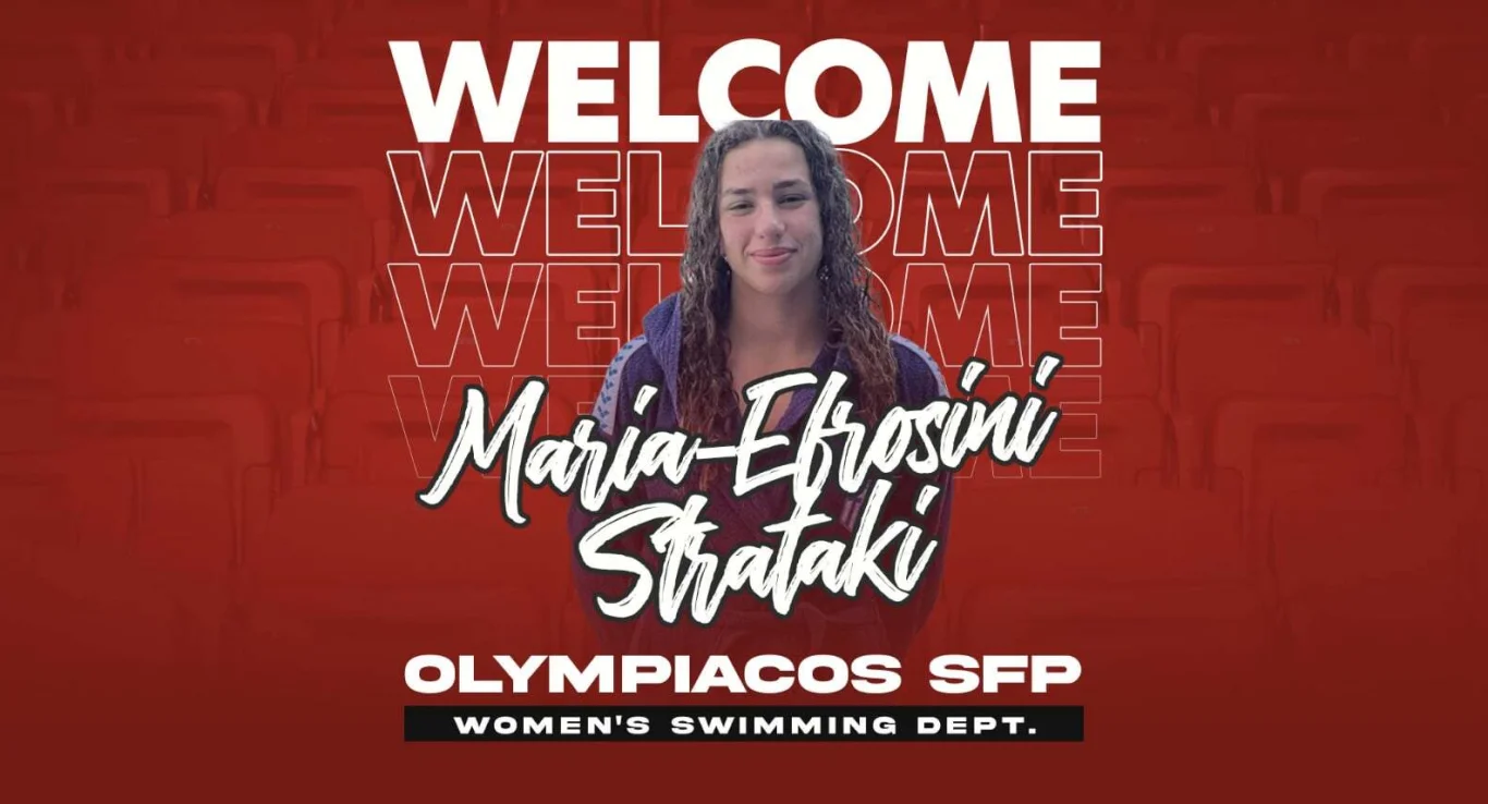 «Ο ΟΛΥΜΠΙΑΚΟΣ Σ.Φ.Π. ανακοινώνει την έναρξη της συνεργασίας του με την Μαρία-Ευφροσύνη Στρατάκη. Η νεαρή αθλήτρια (ημ. γέννησης 30/6/2009) εντάσσεται στην ομάδα κολύμβησης του συλλόγου.