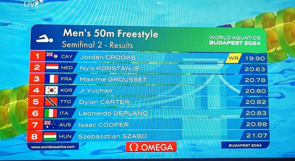 Αν και η Γκρέτσεν Ουόλς συνέχισε τη... συλλογή χρυσών μεταλλίων και παγκοσμίων ρεκόρ, η 5η ημέρα του Παγκοσμίου Πρωταθλήματος κολύμβησης σε 25άρα πισίνα, που διεξάγεται στη Βουδαπέστη, ανήκε στον Τζόρνταν Κρουκς. Ο αθλητής από τα Νησιά Κέιμαν κατέγραψε ένα ιστορικό επίτευγμα, καθώς έγινε ο πρώτος που κολυμπάει σε λιγότερο από είκοσι δευτερόλεπτα τα 50μ. ελεύθερο. Ο κάτοχος του τίτλου είχε δείξει τις... διαθέσεις του από τον πρωινό προκριματικό, όπου με 20.08 κατέρριψε το παγκόσμιο ρεκόρ του Κάλεμπ Ντρέσελ, και στον απογευματινό ημιτελικό σταμάτησε το χρονόμετρο στα 19.90, γράφοντας το όνομά του στα βιβλία της ιστορίας.