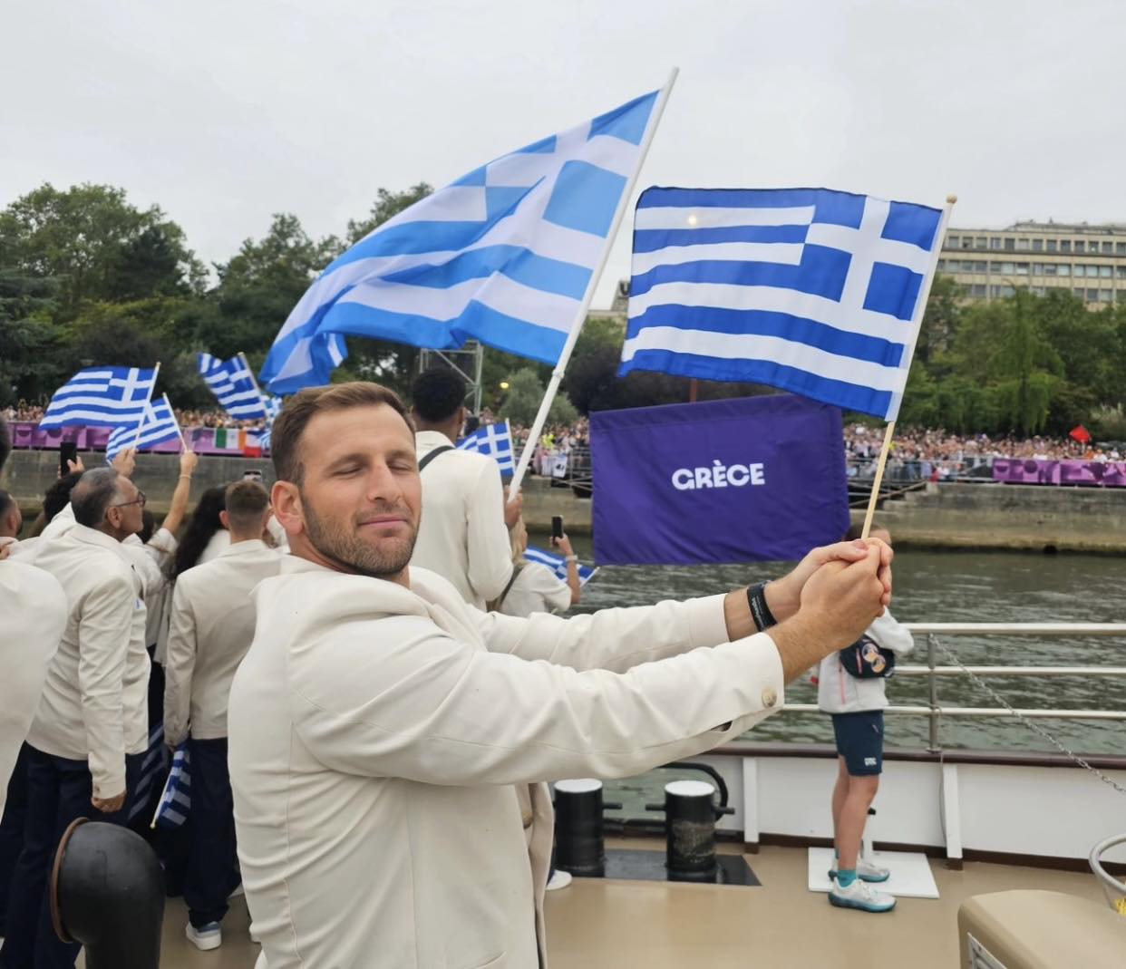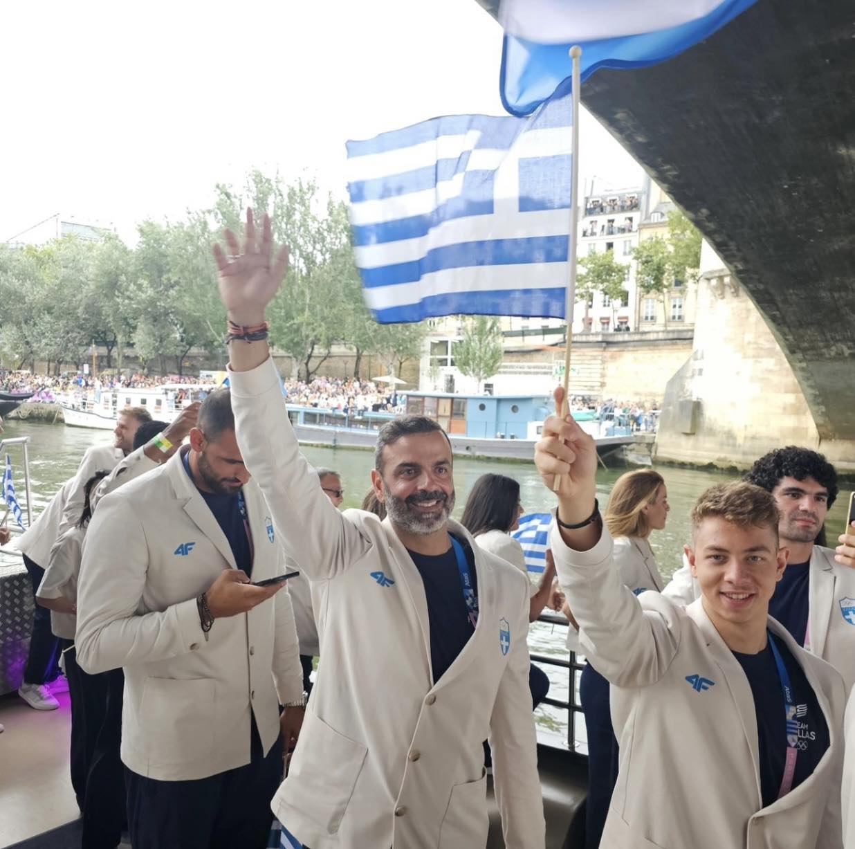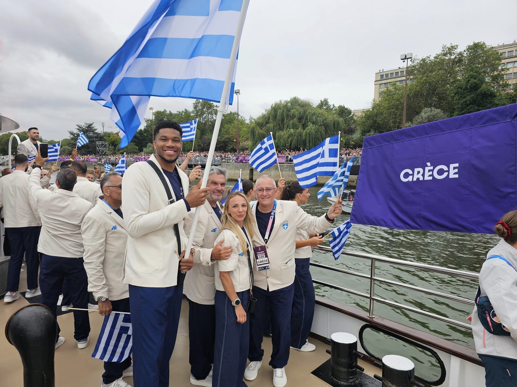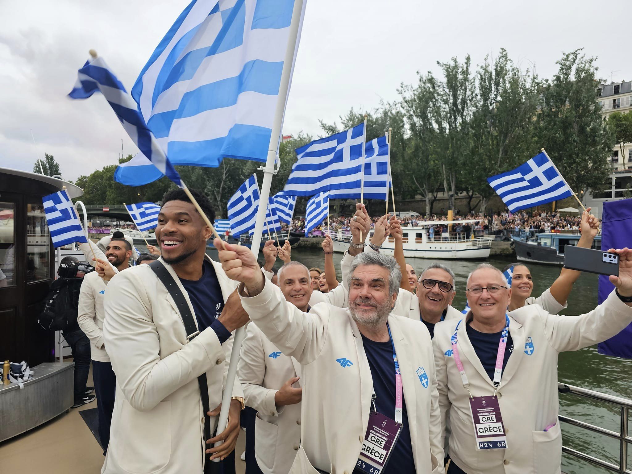Το πρώτο σκάφος που άνοιξε τη ναυτική παρέλαση είχε την ελληνική αποστολή. Οι αθλητές μας κρατούσαν στα χέρια τους ελληνικές σημαίες.