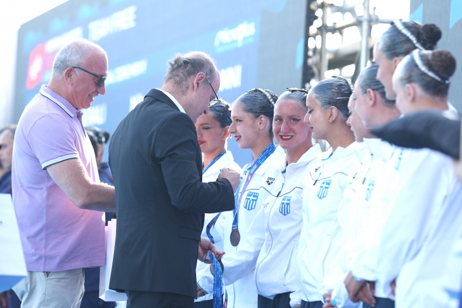 Τις απονομές των μεταλλίων έκαναν ο Πρόεδρος της ΚΟΕ και Αντιπρόεδρος της European Aquatics Κυριάκος Γιαννόπουλος και ο Γενικός Γραμματέας της European Aquatics Νόαμ Σβι.