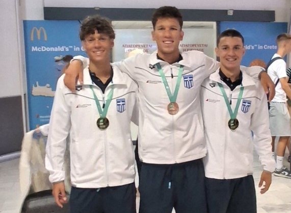 Οι τρεις μεγάλοι πρωταγωνιστές όπως και τα υπόλοιπα παιδιά από την Κρήτη…έτρεξαν να προλάβουν την πτήση από Αθήνα για Ηράκλειο. Εκεί τους περίμενε η Γ’ Αντιπρόεδρος της Κολυμβητικής Ομοσπονδίας Ελλάδας, Αλεξία Μαρίνη που τους υποδέχθηκε και τους μετέφερε τις ολόθερμες ευχές του προέδρου της ΚΟΕ, Κυριάκου Γιαννόπουλου και όλων των μελών του δ.σ.