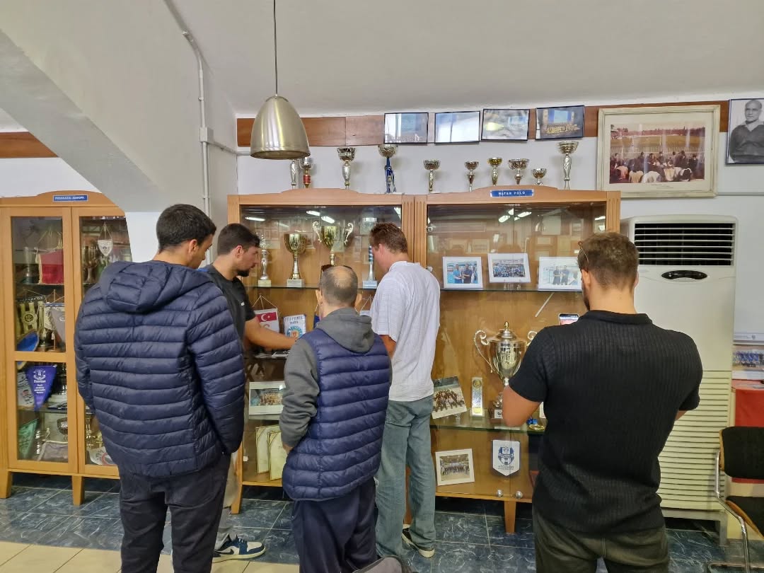 Φυσικά ο σκοπός της επίσκεψης ήταν όλοι, ευρισκόμενοι στο «σπίτι» του Απόλλωνα, να πάρουν μία ακόμη δυνατή «γεύση» της σπουδαίας ιστορίας του Συλλόγου, περιηγούμενοι στα αποδυτήρια, αλλά και στην αίθουσα της τροπαιοθήκης του «Γεώργιος Καμάρας»!