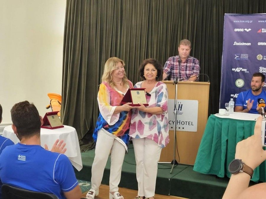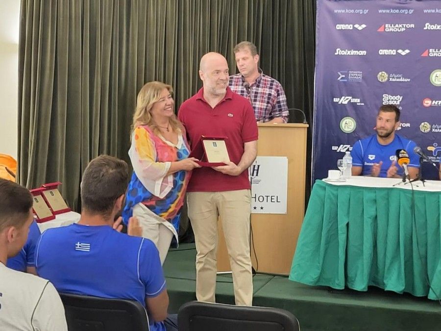 Η Κολυμβητική Ομοσπονδία δια της κ.Σαραντίδου, απένειμε τιμητικές πλακέτες στον κ.Κελαϊδίτη, τον Περιφερειάρχη Στερεάς Ελλάδας (την παρέλαβε ο κ.Μπουρμάς), τη Δήμαρχο Χαλκιδαίων κ. (την πλακέτα παρέλαβε η Ελένη Αϊνδιλή) και στον ΔΟΑΠΠΕΧ (την παρέλαβε ο αντιπρόεδρος, Παναγιώτης Νικολάου).