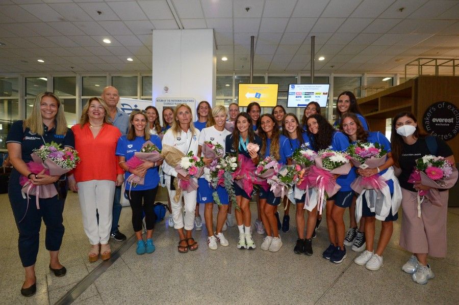 Την αποθέωση γνώρισαν κατά την υποδοχή στο αεροδρόμιο «Ελευθέριος Βενιζέλος» της Αθήνας τα κορίτσια της Εθνικής ομάδας Καλλιτεχνικής Κολύμβησης, κατά την επιστροφή τους από το Παγκόσμιο πρωτάθλημα της Βουδαπέστης, το πρωί της Κυριακής 26/6 (λίγο μετά την άφιξη της Κολύμβησης). Πρώτη και καλύτερη η Ευαγγελία Πλατανιώτη με τα δύο ιστορικά μετάλλια (χάλκινα) του Τεχνικού και Ελεύθερου Σόλο στο στήθος, αλλά και με τις υπόλοιπες διακρίσεις των κοριτσιών (4η θέση στο Κόμπο, την 5η θέση στο Τεχνικό Ομαδικό, την 6η θέση στο Ελεύθερο Ντουέτο με τις Πλατανιώτη / Μαλκογεώργου, την 6η θέση στο Highlight και την 8η στο Ελεύθερο Ομαδικό).