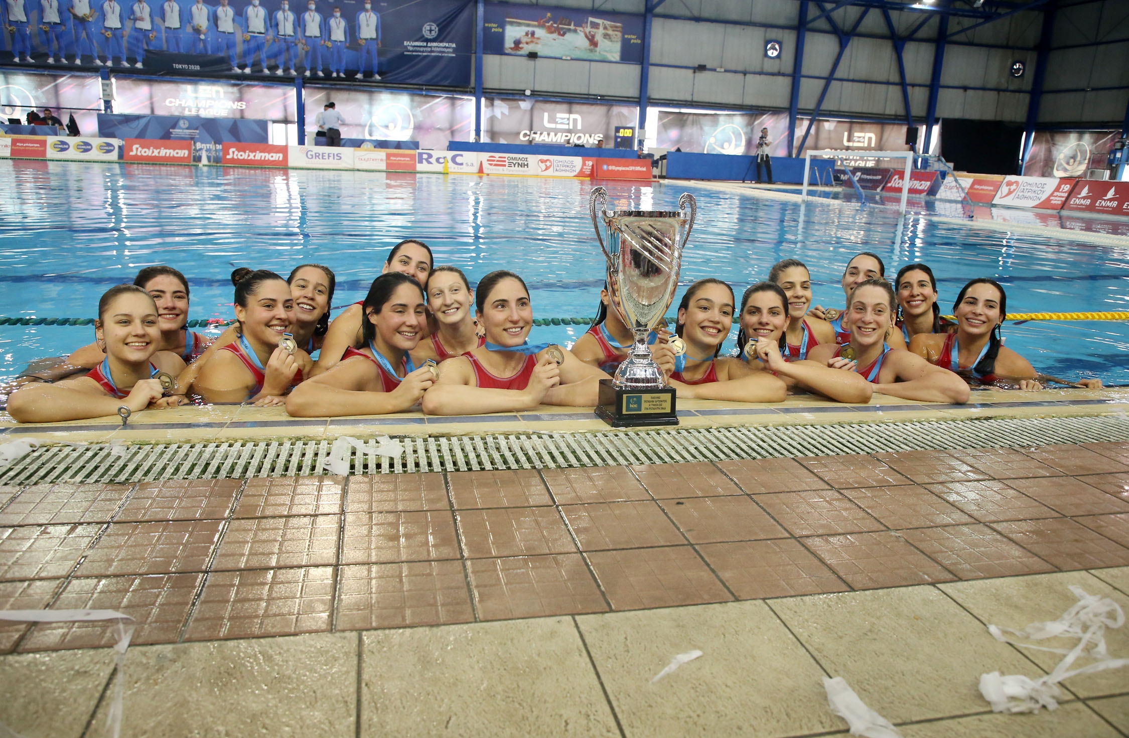 Τα μετάλλια και το Κύπελλο στις πρωταθλήτριες – νταμπλούχες έδωσε ο πρόεδρος της Κολυμβητικής Ομοσπονδίας Ελλάδας, Κυριάκος Γιαννόπουλος.