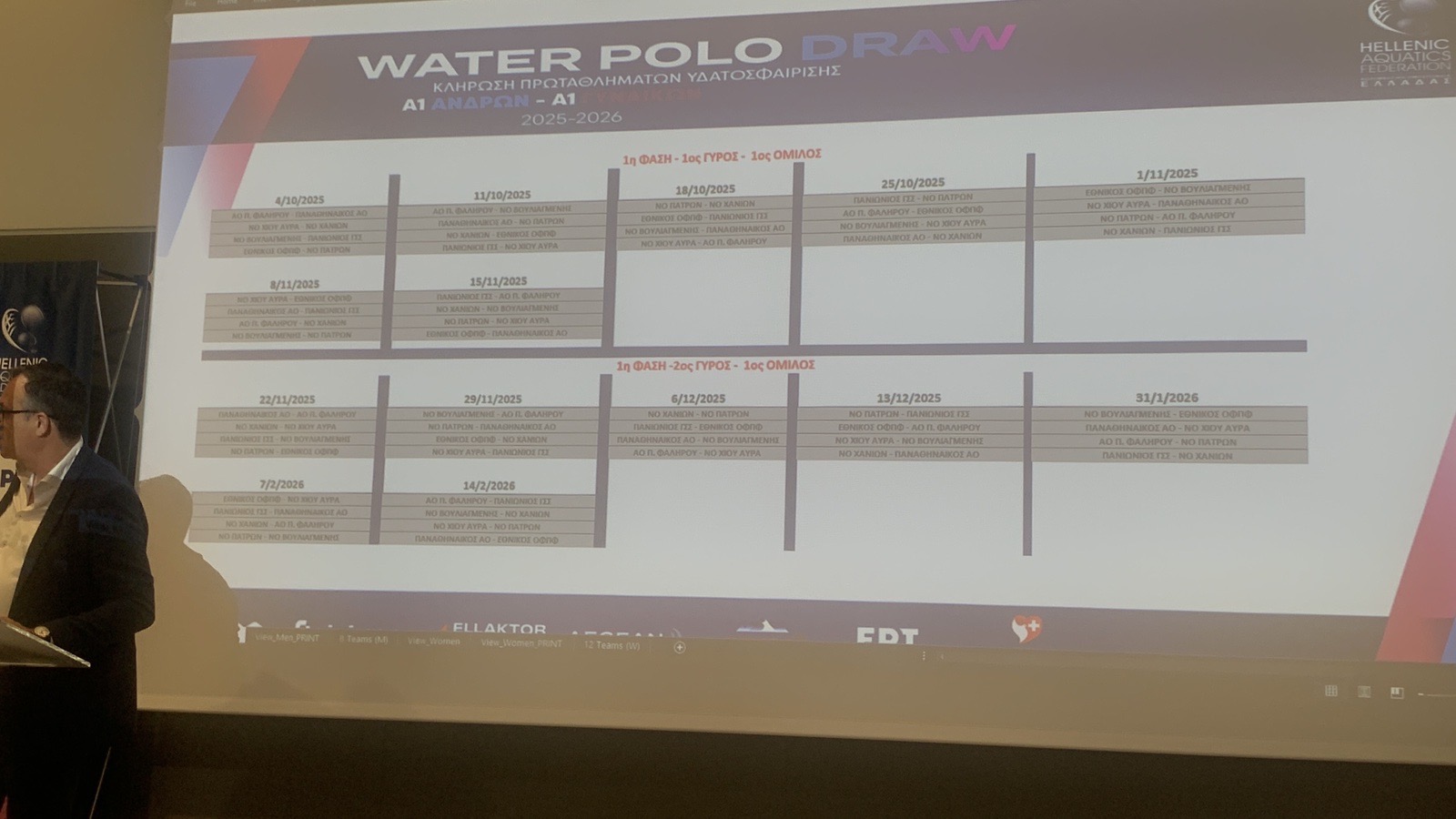 Στην αίθουσα του Ολυμπιακού Μουσείου Αθήνας , σήμερα 1η Ιουλίου του 2025 πραγματοποιείται η κλήρωση των πρωταθλημάτων υδατοσφαίρισης της Α1 Εθνικής κατηγορίας ανδρών και της Α1 Εθνικής κατηγορίας γυναικών.