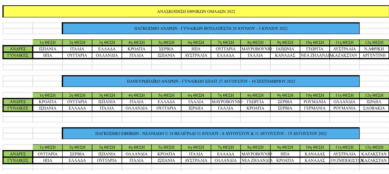 Αξίζει να τονίσουμε ότι συμμετοχή στην 8άδα όλων των παραπάνω διοργανώσεων είχαν μόνο οι εθνικές ομάδες της Ουγγαρίας, της Ισπανίας, της Ιταλίας και της Ελλάδας. Από εκεί και πέρα το Μαυροβούνιο ήταν στην 8άδα όλων των διοργανώσεων ανδρών αλλά δεν είχε καν συμμετοχή σε διοργάνωση γυναικών και η Ολλανδία ήταν στην 8άδα όλων των διοργανώσεων στις γυναίκες αλλά όχι στους άνδρες.