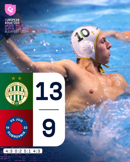 Με ξέσπασμα στην τρίτη περίοδο, η πρωταθλήτρια Ευρώπης Φερεντσβάρος επιβλήθηκε της κατόχου του Euro Cup, Γιουγκ, με 13-9 στη Βουδαπέστη και κατέκτησε το συγκεκριμένο τρόπαιο για πέμπτη φορά στην ιστορία της.