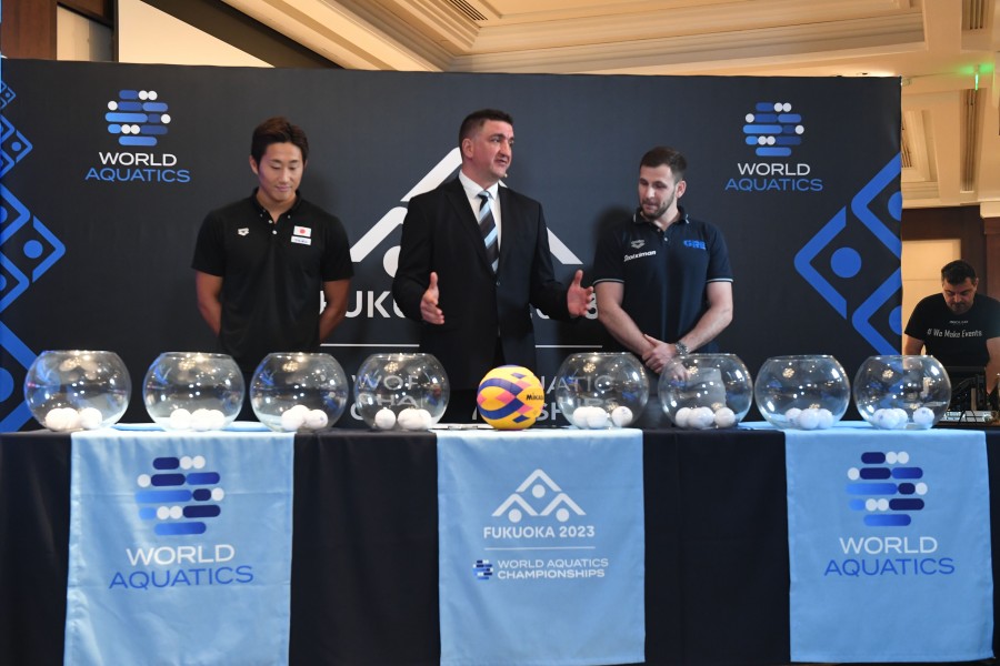 Με μεγάλη λαμπρότητα έγινε το μεσημέρι της Τρίτης του Πάσχα (18/4), στην Αθήνα (ξενοδοχείο Athens Marriott), η κλήρωση των Ομίλων του Παγκοσμίου Πρωταθλήματος Υδατοσφαίρισης Ανδρών / Γυναικών, που θα γίνει στη Φουκουόκα, 14-29 Ιουλίου 2023.