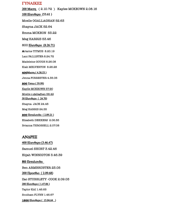 Στην παρακάτω φωτογραφία οι αθλητές που κολύμπησαν στα όρια Α FINA (τα Εθνικά όρια θα είναι πιο δύσκολα):