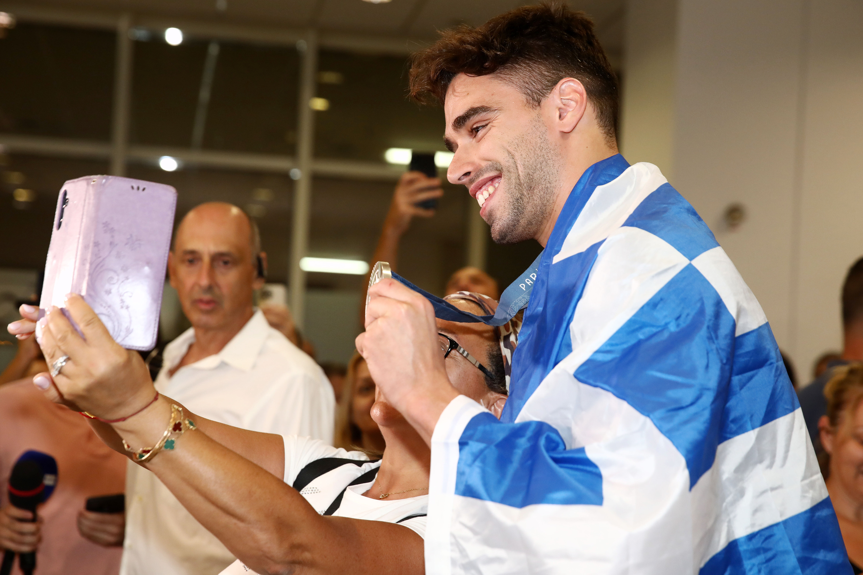 Επέστρεψε το βράδυ της Δευτέρας 5, Αυγούστου στο αεροδρόμιο «Ελευθέριος Βενιζέλος» των Αθηνών η εθνική ομάδα κολύμβησης που μας εκπροσώπησε στους Ολυμπιακούς Αγώνες του Παρισιού. Κεντρικό πρόσωπο ο ασημένιος ολυμπιονίκης στα 200 ύπτιο Απόστολος Χρήστου. Όλοι ήθελαν να βγάλουν μια φωτογραφία μαζί του, να τον φιλήσουν, να τον αγκαλιάσουν, να τον συγχαρούν.