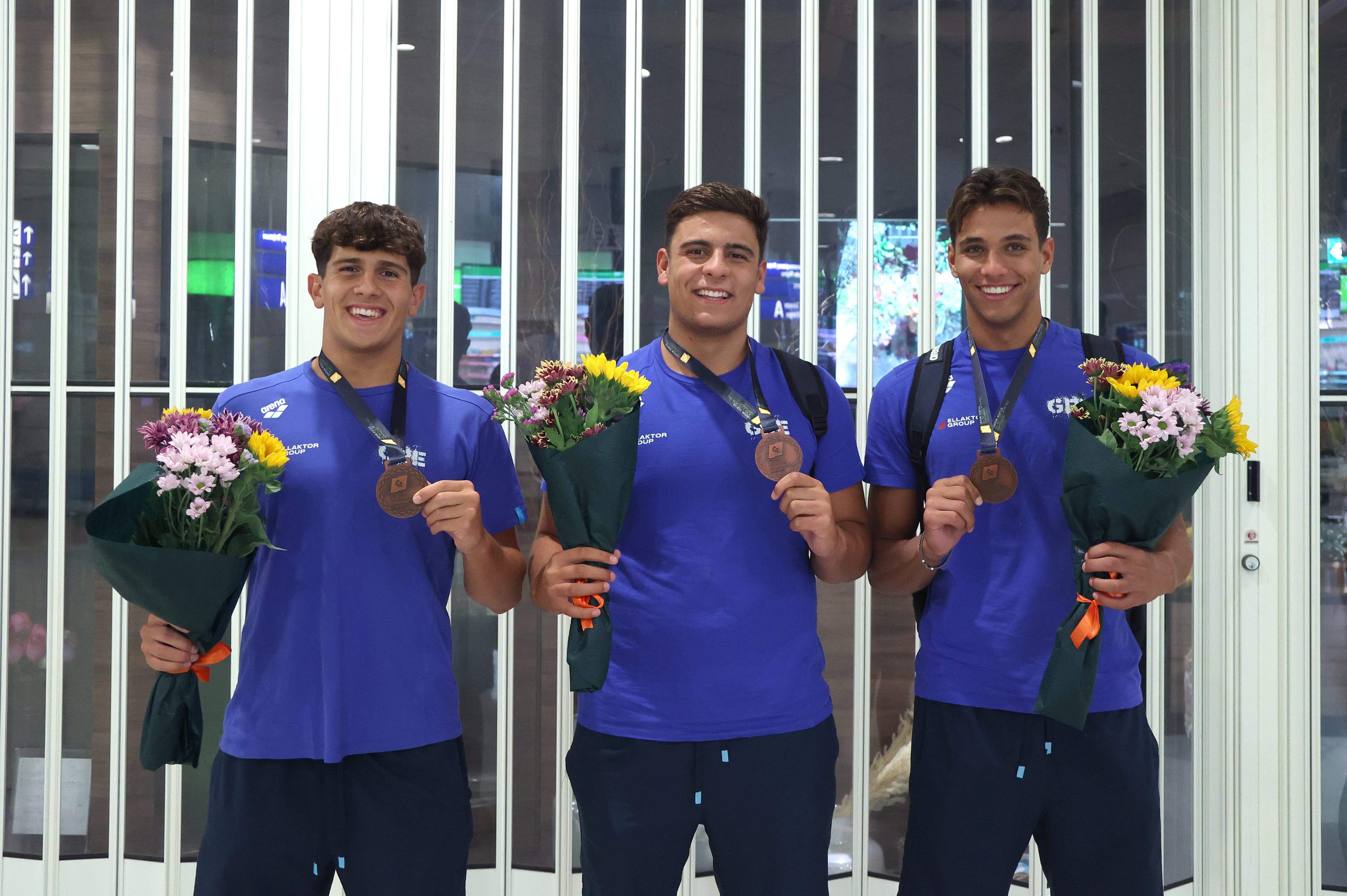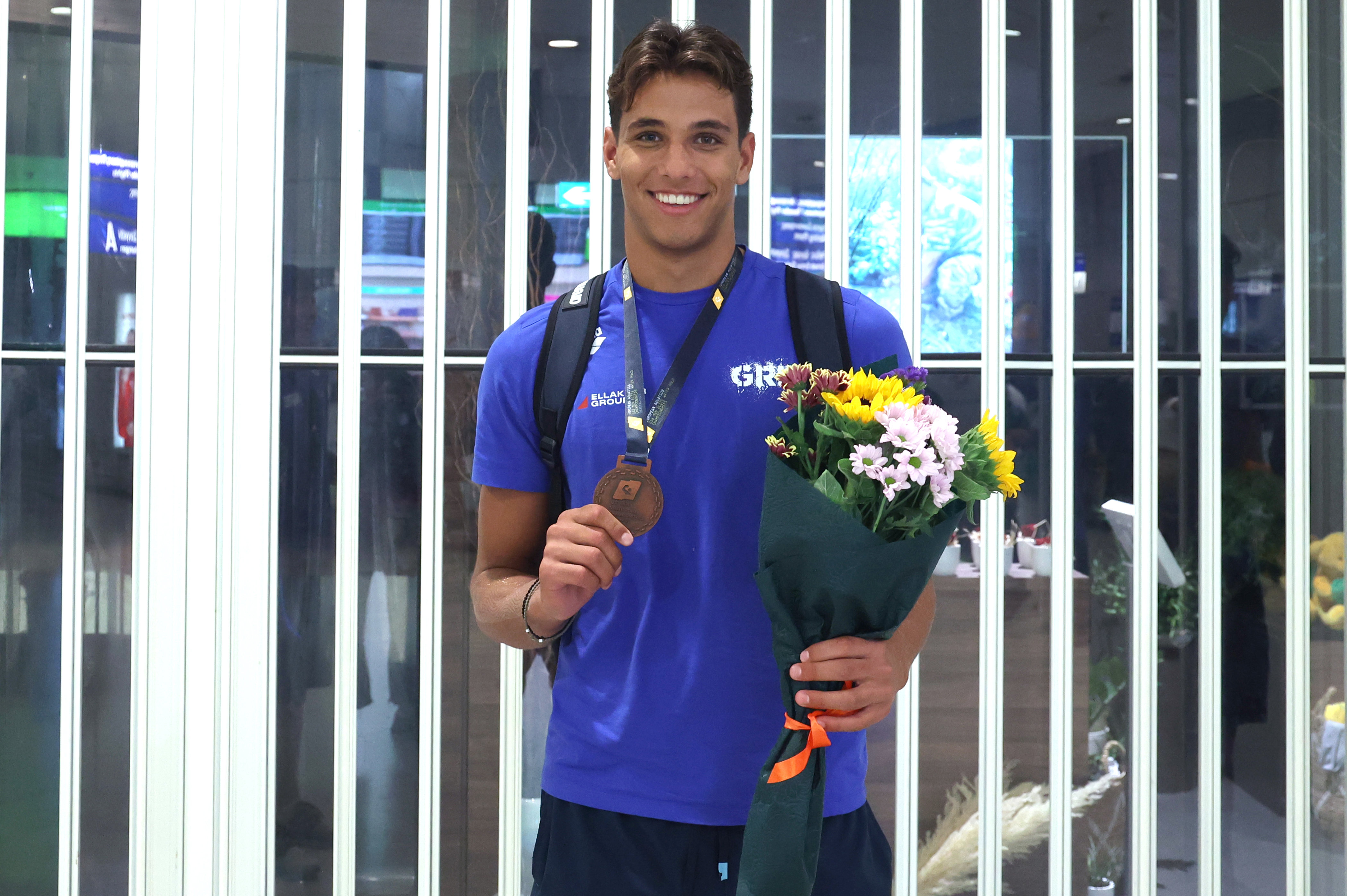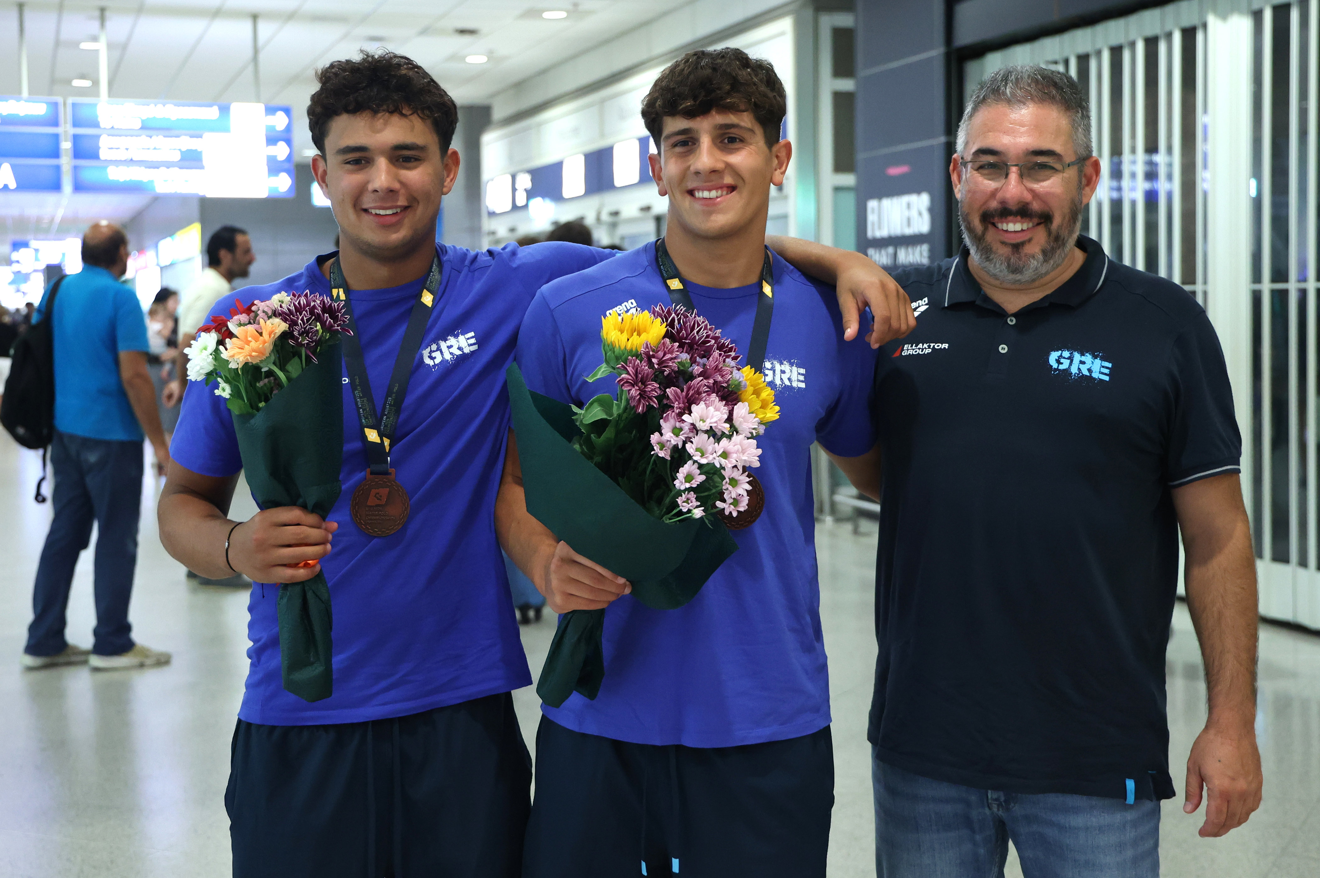 Στο αεροδρόμιο «Ελευθέριος Βενιζέλος» υποδέχθηκε την αποστολή εκ μέρους της Κολυμβητικής Ομοσπονδίας, ο Α΄Αντιπρόεδρος, Γιώργος Αφρουδάκης, ενώ παρόντες ήταν συγγενείς και φίλοι που χειροκρότησαν τους πρωταγωνιστές και τους πρόσφεραν ανθοδέσμες και μια μεγάλη, ζεστή αγκαλιά.