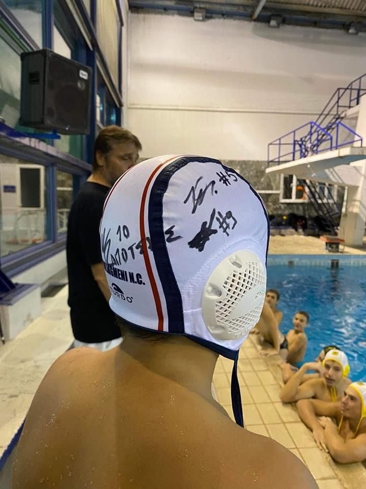 Παρέλαβε εχθές ο «Βενιαμίν» της ομάδας παίδων του Άρη, γεννημένος το 2011, Βασίλης Αλιάτσης το δώρο του (σκουφάκι της Βουλιαγμένης με υπογραφές των παικτών της).