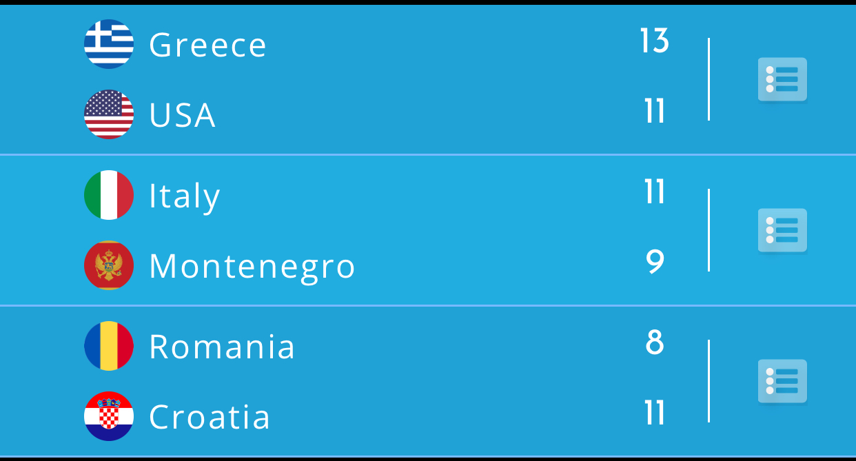Μετά τα αποτελέσματα αυτά η ελληνική ομάδα προκρίθηκε στα προημιτελικά και αποφεύγει την τέταρτη θέση του ομίλου που οδηγεί σε νοκ-άουτ παιχνίδι απέναντι στους Ισπανούς, οι οποίοι είναι η πρώτη ομάδα του δεύτερου ομίλου και ένα από τα μεγάλα φαβορί για την κατάκτηση του χρυσού μεταλλίου. Η Ελλάδα, η Ιταλία και η Κροατία περιμένουν την τέταρτη ομάδα που θα παίξει στα προημιτελικά και η οποία θα βγει από το παιχνίδι που ακολουθεί ανάμεσα στην Γαλλία και το Μαυροβούνιο.