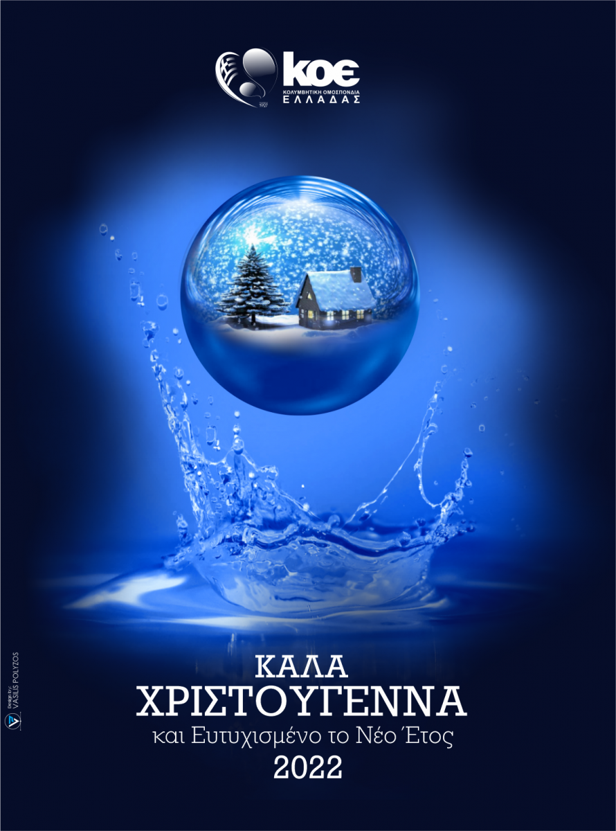 Το Διοικητικό Συμβούλιο της Κολυμβητικής Ομοσπονδίας Ελλάδας, τα στελέχη και οι εργαζόμενοι της, εύχονται σε όλο τον κόσμο των αθλημάτων της ΚΟΕ, αλλά και του Ελληνικού Αθλητισμού γενικότερα, Καλά Χριστούγεννα και Ευτυχισμένος ο Νέος Χρόνος 2022, με Υγεία, Δύναμη και Ελπίδα για ένα καλύτερο Αύριο.