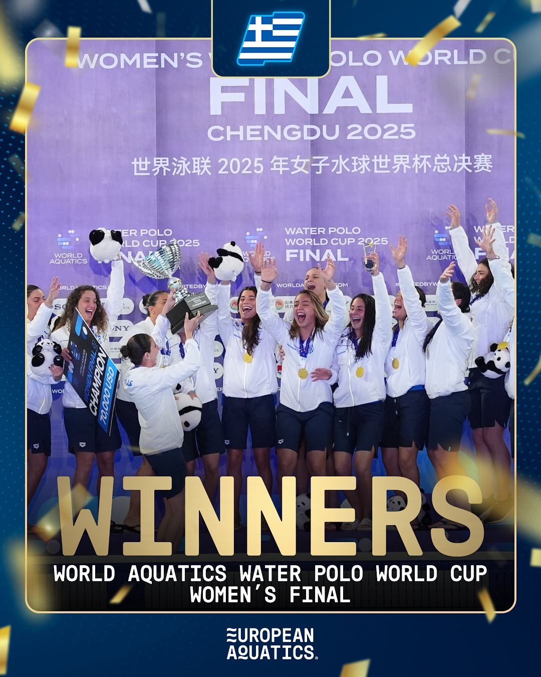 Στην κορυφή του κόσμου η Εθνική μας ομάδα των Γυναικών. Το καλύτερο πασχαλινό δώρο για την ελληνική Υδατοσφαίριση. Τα κορίτσια του Χάρη Παυλίδη "έγραψαν" με χρυσά γράμματα το όνομά τους στην ιστορία κατακτώντας την πρώτη θέση στο World Cup, το οποίο ολοκληρώθηκε σήμερα στον πόλη Τσενγκντού της Κίνας.