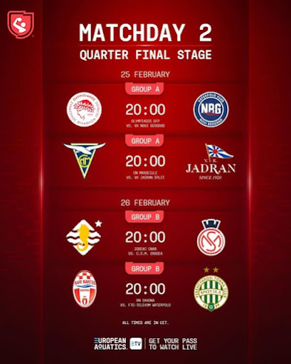 Το δεύτερο βήμα για τη Μάλτα θέλει να πραγματοποιήσει απόψε ο Ολυμπιακός, ο οποίος υποδέχεται στις 21:00, στο κολυμβητήριο "Πέτρος Καπαγέρωφ" του Πειραιά, τη Νόβι Μπέογκραντ των Άγγελου Βλαχόπουλου και Δημήτρη Σκουμπάκη, στο ντέρμπι της 2ης αγωνιστικής του Α΄ ομίλου για τη φάση των "8" του Champions League.