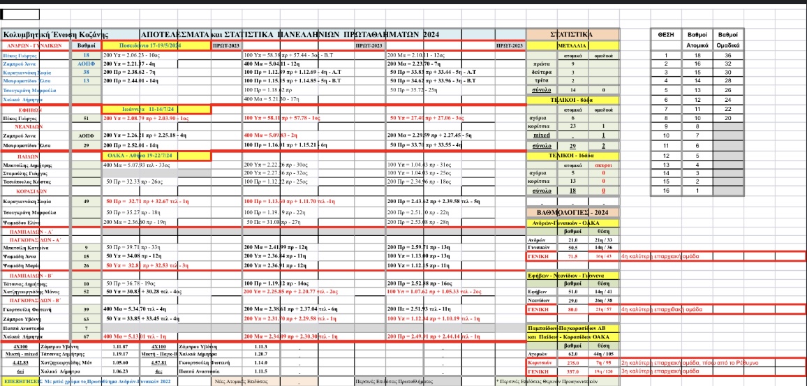 Πέρα από το ΔΣ που βοηθάει πολύ, πρέπει να σταθώ στην μεγάλη προσπάθεια των προπονητών της Ομάδας, ιδιαίτερα της Αγωνιστικής Αμπατζίδου Μαρία και Προαγωνιστικής Μητσαργιώτη Θωμά και των ακαδημιών Δαβιδοπούλου Στέλλα και Καραθανάση Βάγια. Πολλές οι διακρίσεις στους Θερινούς των Προαγωνιστικών, πολλές και στα Πανελλήνια Πρωταθλήματα, όπου ή "μικρή απομονωμένη" Κοζάνη είναι ανάμεσα στις 2 με 4 καλύτερες Επαρχιακές Ομάδες! σε όλα τα Πρωταθλήματα ! στην 7η στη Βαθμολογία του Πανελληνίου Πρωτάθληματος Κοριτσιών 13-16 ετών, 16η στη Γενική στο Εθνικό Πρωτάθλημα, 19η στο Κατηγοριών μεταξύ 120 ομάδων που βαθμολογήθηκαν!