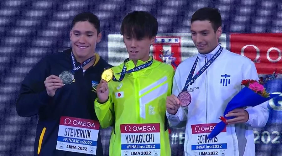 Κάνοντας μια καταπληκτική κούρσα στον τελικό των 400μ μικτής στο Παγκόσμιο Πρωτάθλημα Νέων στη Λίμα (Περού) κατέκτησε τη τρίτη θέση και το χάλκινο μετάλλιο.