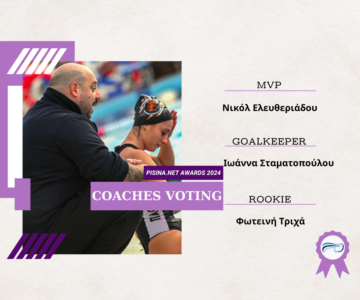 Η καθιερωμένη ψηφοφορία για την ανάδειξη των κορυφαίων αθλητών και αθλητριών της χρονιάς, που διοργανώνεται από το pisina.net, συνεχίζεται! Οι προπονητές και οι αρχηγοί των ομάδων της Α1 Ανδρών και Γυναικών επιλέγουν τους κορυφαίους σε τρεις βασικές κατηγορίες: