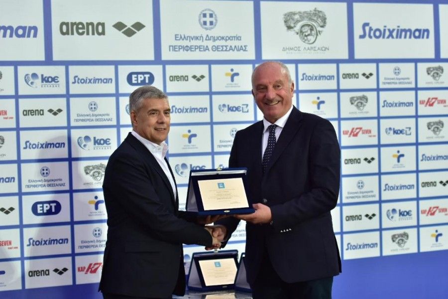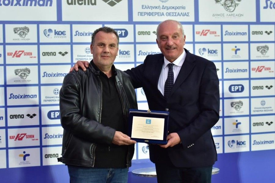 Στο ημίχρονο του τελικού του Stoiximan Final-4 Κυπέλλου Υδατοσφαίρισης Ανδρών που φιλοξενήθηκε στο Δημοτικό Κολυμβητήριο Νέας Πολιτείας στη Λάρισα, μεταξύ του Ολυμπιακού και του ΝΟ Βουλιαγμένης, ο πρόεδρος της Κολυμβητικής Ομοσπονδίας Ελλάδας, Κυριάκος Γιαννόπουλος απένειμε τιμητικές πλακέτες:
