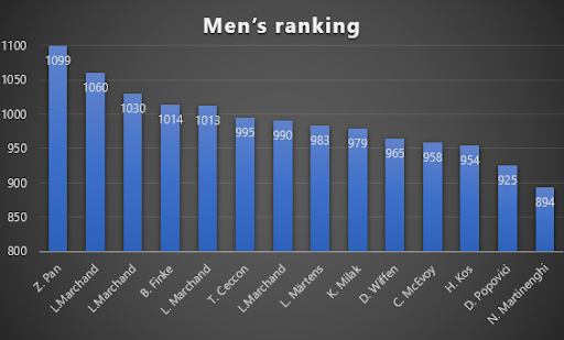 Για να καθορίσει τις πιο κυρίαρχες εμφανίσεις, το SwimSwam, χρησιμοποίησε το σύστημα βαθμολόγησης της World Aquatics (FINA).