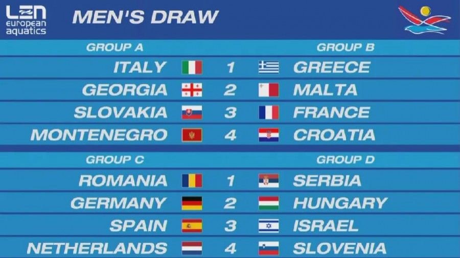 Με την παρουσία του Αντιπροέδρου της Ευρωπαϊκής Ομοσπονδίας (LEN) και Προέδρου της ΚΟΕ Κυριάκου Γιαννόπουλου, έγινε το βράδυ του Μ. Σαββάτου (23/4) στο Σπλιτ η κλήρωση των Ομίλων για το Ευρωπαϊκό πρωτάθλημα υδατοσφαίρισης Ανδρών και Γυναικών που θα διεξαχθεί στην πόλη της Κροατίας 27 Αυγούστου - 10 Σεπτεμβρίου 2002.