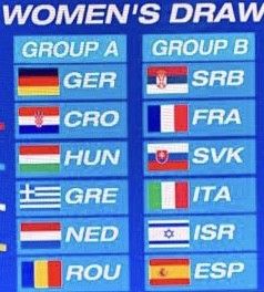 Η Εθνική μας ομάδα των Γυναικών κληρώθηκε στον Α' Όμιλο (από τους δύο) με αντιπάλους τις: Γερμανία, Κροατία, Ουγγαρία, Ολλανδία, Ρουμανία.