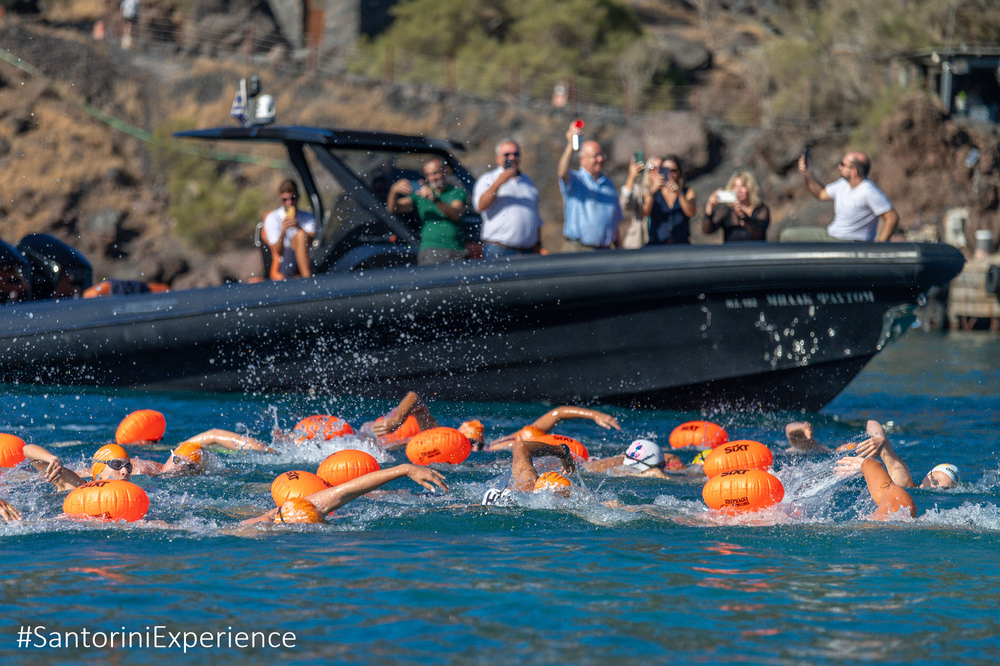 Η κολύμβηση πραγματοποιείται με την υποστήριξη της Ένωσης Λεμβούχων Σαντορίνης, της Γεωθήρα, της Lifeguard Patrol, της Caldera Yachting και του Ναυτικού Ομίλου Σαντορίνης.