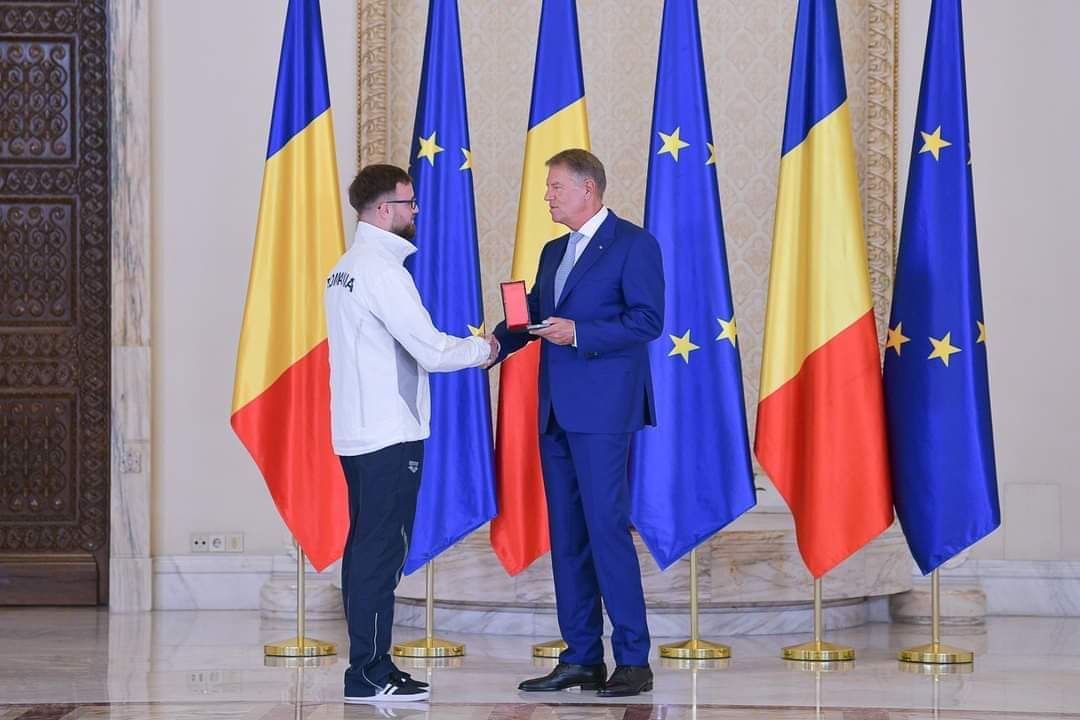 Ο πρόεδρος της Ρουμανίας,Khaous Iohannis βράβευσε τον Νταβίντ Ποποβίτσι (David Popovici) και τον προπονητή του Adrian Rodulescu.