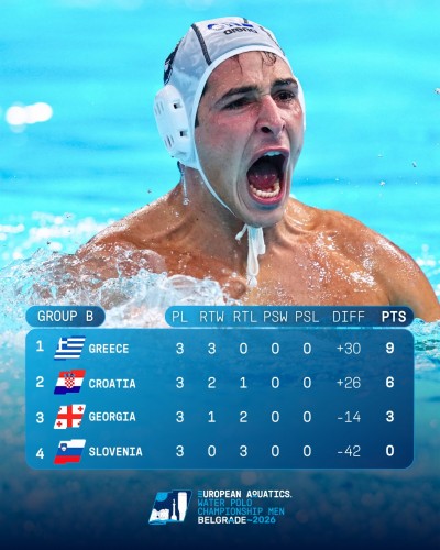Έκλεισε τους…λογαριασμούς της με τον ιδανικότερο τρόπο η εθνική ομάδα υδατοσφαίρισης των ανδρών στην α’ φάση του ευρωπαϊκού πρωταθλήματος στο Βελιγράδι και πάει, πρώτη και καλύτερη από τον β’ όμιλο, στη δεύτερη πλέον φάση.