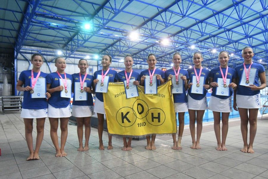 Ο ΚΟ Ηρακλείου με τις Μαρίνα Βάγκε, Ευαγγελία Βαρδιαμπάση, Άρτεμη Κουτράκη, Λουλουδένια Μαρία Λαμπάκη, Μυρτώ Μαγκαναράκη, Μελίνα Σκευάκη, Ελένη Φουντουλάκη, Ειρήνη Μαρία Χαριστάκη, (αναπλ. Λεωνιδία Μασκίνη, Ειρήνη Πασσά) κατέκτησε το χρυσό μετάλλιο στο Ελεύθερο Ομαδικό, στο βραδινό πρόγραμμα της δεύτερης ημέρας (Σάββατο 9/7) του Πανελληνίου πρωταθλήματος Καλλιτεχνικής Κολύμβησης Κορασίδων Α', στο Εθνικό Κολυμβητήριο Πειραιά. Βαθμολογήθηκε με 73,0576 β.