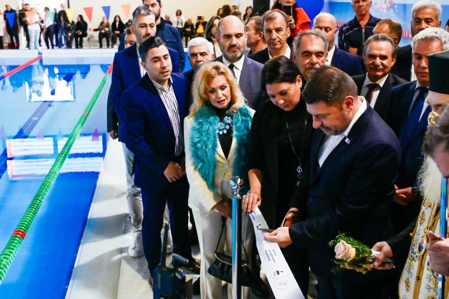 Ο Κυριάκος Γιαννόπουλος στα εγκαίνια του κλειστού κολυμβητηρίου Κορυδαλλού