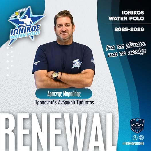 Ο Α.Ο. Ιωνικός Νικαίας ανακοινώνει με χαρά την ανανεώση της συνεργασίας με τον Αρσένη Μαρούλη. Μετά την εξαιρετική περσινή χρονιά, όπου η ομάδα κατέλαβε την 4η θέση στο πρωτάθλημα της Α2, ο Μαρούλης θα συνεχίσει να προσφέρει τις πολύτιμες υπηρεσίες του ως προπονητής του αντρικού τμήματος.