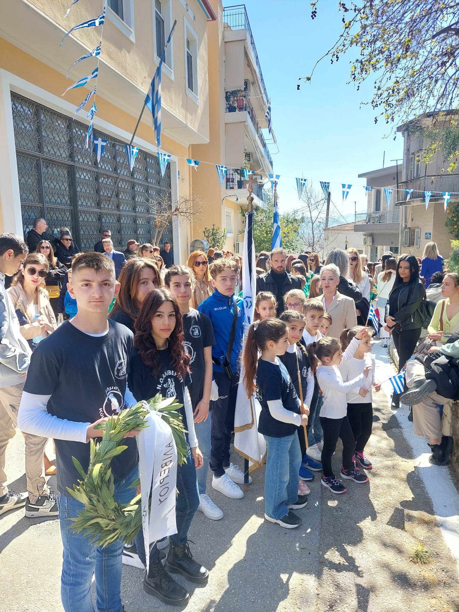 Πολύς ο κόσμος που χειροκρότησε θερμά τα παιδιά που παρέλασαν, μια ημέρα ηλιόλουστη και λαμπρή για την πόλη του Αλιβερίου.