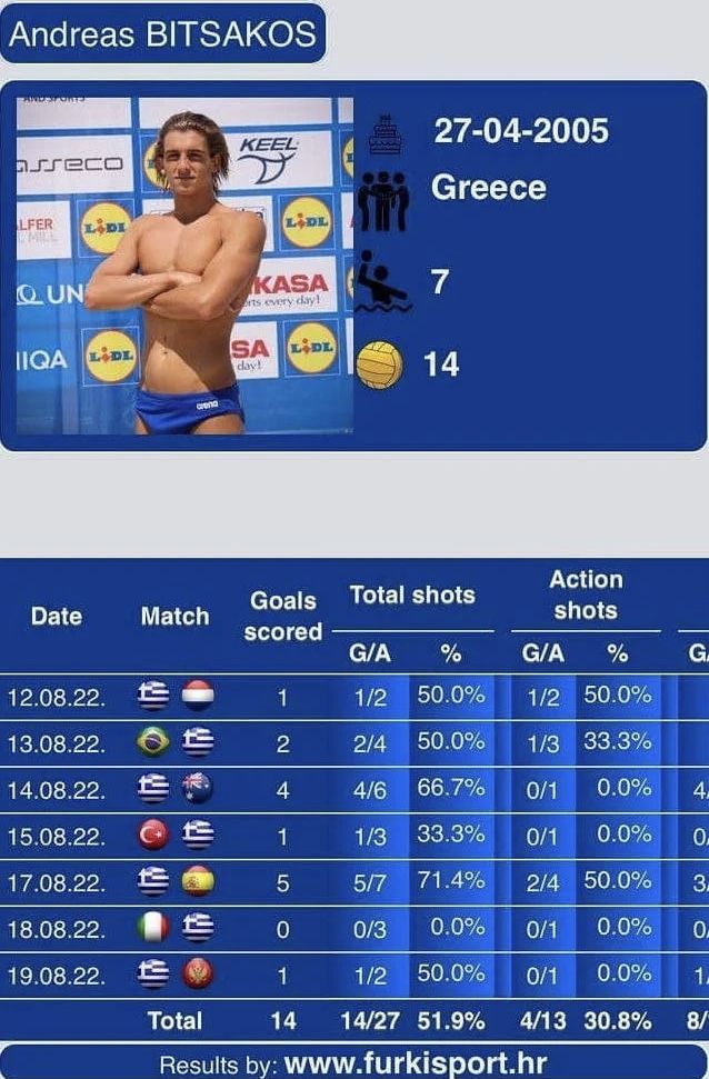 Ένας έλληνας όμως γύρισε στο σπίτι του, στην Πάτρα, με μία ατομική διάκριση. Πρόκειται για τον Ανδρέα Μπιτσάκο, που συμπεριελήφθη στην καλύτερη επτάδα της διοργάνωσης. Συγχαρητήρια στον νεαρό διεθνή που συνεχίζει την παράδοση της Πάτρας στην ανάδειξη μεγάλων ταλέντων.
