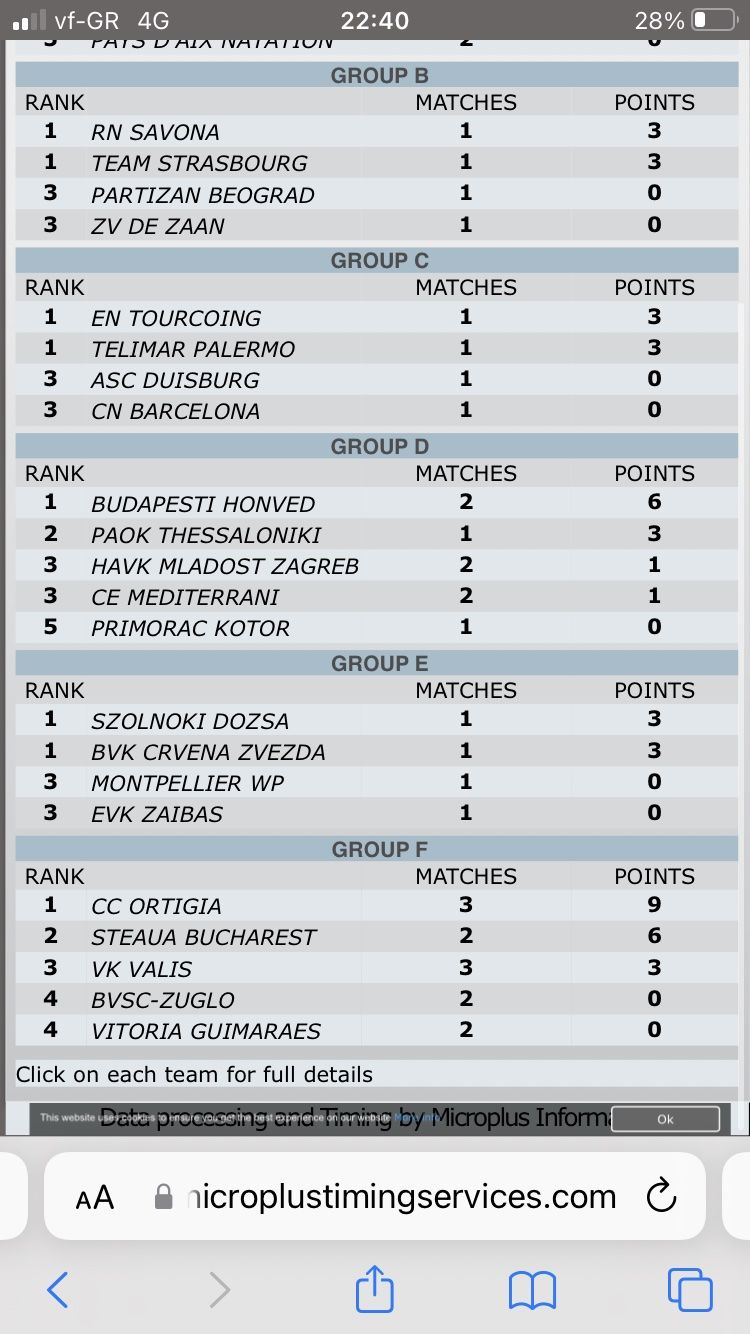 Παρακάτω οι βαθμολογίες των ομίλων μέχρι στιγμής και το αυριανό πρόγραμμα.