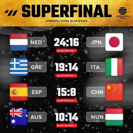 Συμπληρώθηκε η τετράδα. Η Ολλανδία είναι ο αντίπαλος της Εθνικής μας ομάδας Υδατοσφαίρισης Γυναικών (19/4, 13.30 ώρα Ελλάδας) στην ημιτελική φάση του World Cup, το οποίο φιλοξενείται στην πόλη Τσανγκντού της Κίνας.