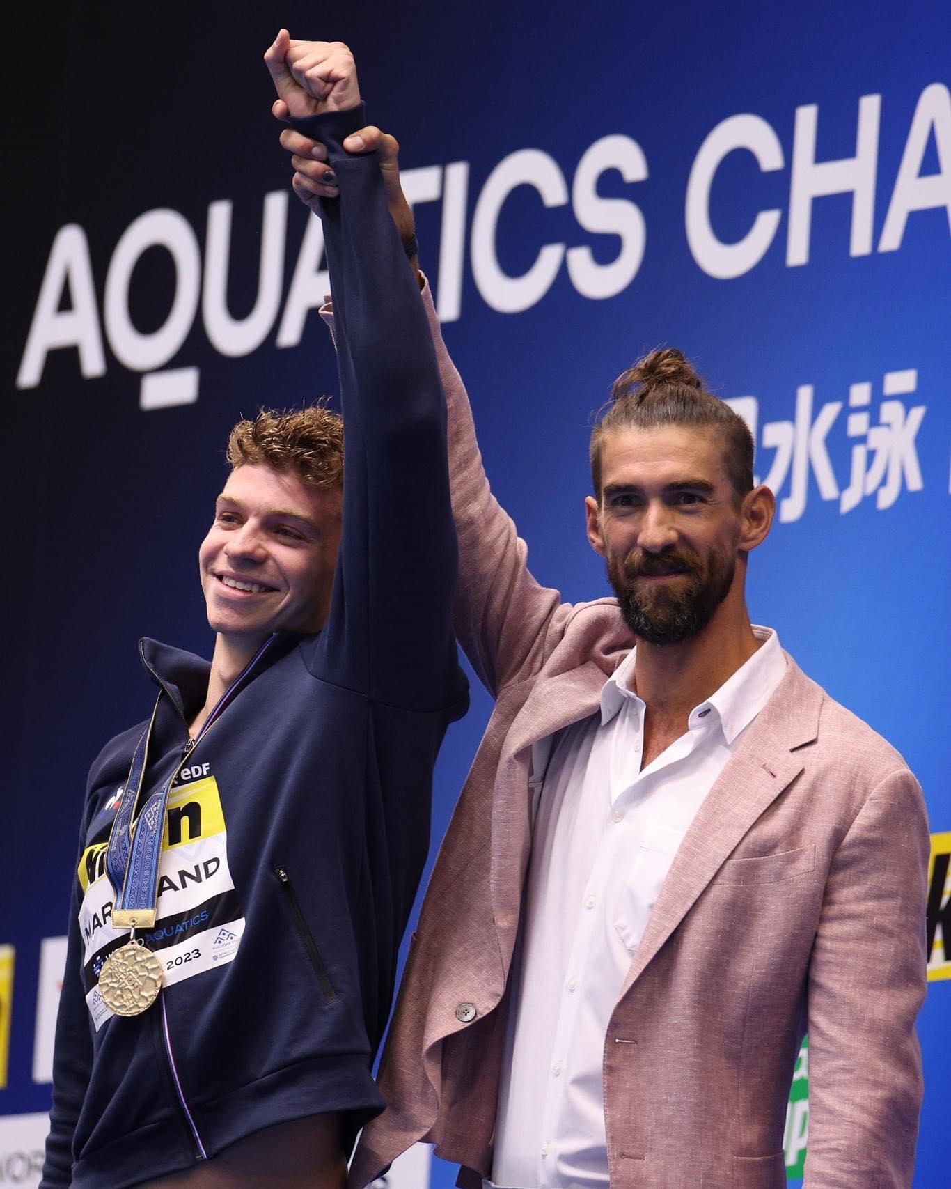 Η φωτογραφία είναι ιστορική, αφού ο Φελπς με κότσο στα μαλλιά και ντυμένος με σακάκι και πουκάμισο, σηκώνει ψηλά το χέρι του Μαρσόν, δείχνοντας σε όλον τον κόσμο ποιος είναι ο νέος… βασιλιάς στην Κολύμβηση.