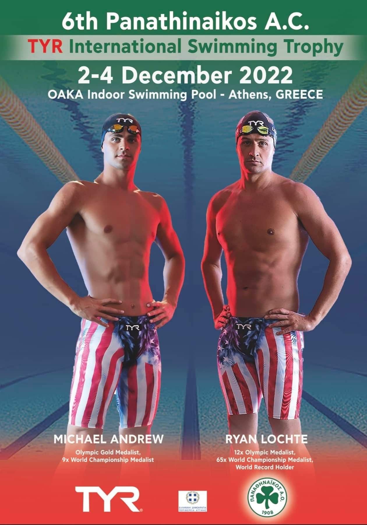 Παρουσία δυο μεγάλων προσωπικοτήτων από τον χώρο της κλασικής κολύμβησης, των Αμερικανών Ράιαν Λόχτε και Μάϊκλ Άντριου, ο Παναθηναϊκός - όπως είναι ήδη γνωστό ΕΔΩ και μήνες - θα διοργανώσει από 2 έως 4 Δεκεμβρίου στο ΟΑΚΑ μια σπουδαία κολυμβητική συνάντηση με την επωνυμία «6ο κολυμβητικό τρόπαιο Παναθηναϊκού». Η διοργάνωση θα γίνει με την εταιρία αθλητικών ειδών TYR και με την αιγίδα της ΚΟΕ και της Περιφερειακής Επιτροπής κολύμβησης Αττικής.