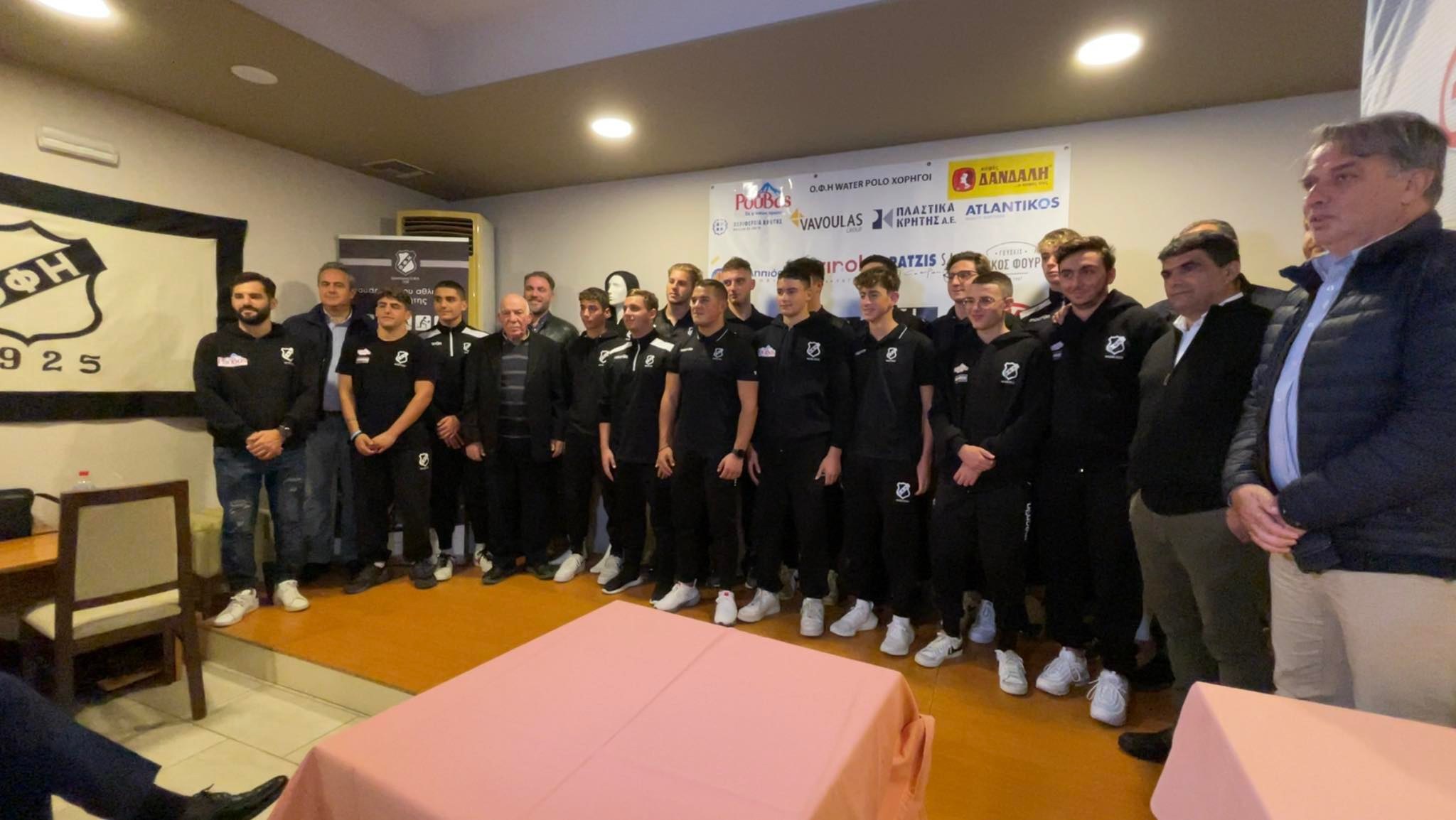 Το μέλος του Δ.Σ. του Ερασιτέχνη ΟΦΗ Γιάννης Αρώνης, ο οποίος είναι και χορηγός της υδατοσφαίρισης του ΟΦΗ, ανέφερε ότι «φέτος μπορεί να είναι μια πολύ καλή χρονιά για το πόλο του ΟΦΗ και μπορεί να κάνει το άλμα στην Α1. Θέλω να ευχαριστήσω τους χορηγούς που είναι κοντά μας. Τα Νερά Ρούβας, την Περιφέρεια Κρήτης, ο πολύ μεγάλος άνθρωπος, που αν δεν υπήρχε, δεν θα υπήρχε για μένα, Ερασιτέχνης ΟΦΗ, ο Γιάννης Δανδάλης, με αυτό το βάρος που κουβαλάει όλα αυτά τα χρόνια. Ευχαριστώ ακόμη την οικογένεια Βάβουλα, την οικογένεια Λεμπιδάκη, τον κ. Φασομυτάκη, τον κ. Ζαμπετάκη, την οικογένεια του κ. Μαυράκη, τον κ. Καράτζη, τον κ. Νικολιδάκη, το κ. Νίκο Μπαξεβάνη, την μεγάλη οικογένεια του κ. Τσικνάκη και τον κ. Αντώνη Μιχελιδάκη».