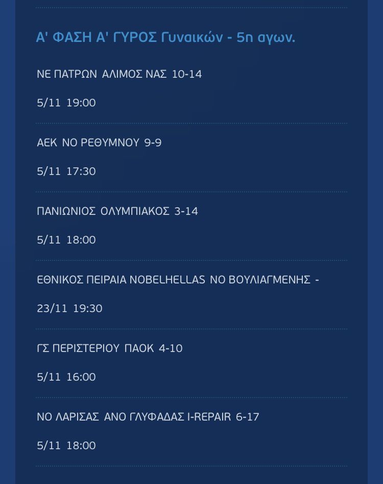 Σπουδαίο ματς έγινε και στη Γλυφάδα, όπου ΑΕΚ και Ρέθυμνο αναδείχθηκαν ισόπαλες με 9-9 και πήραν τους πρώτους τους βαθμούς στο πρωτάθλημα, ενώ ο πρωτοπόρος Ολυμπιακός δεν δυσκολεύτηκε κόντρα στον Πανιώνιο εκτός έδρας και πέρασε με 14-3.