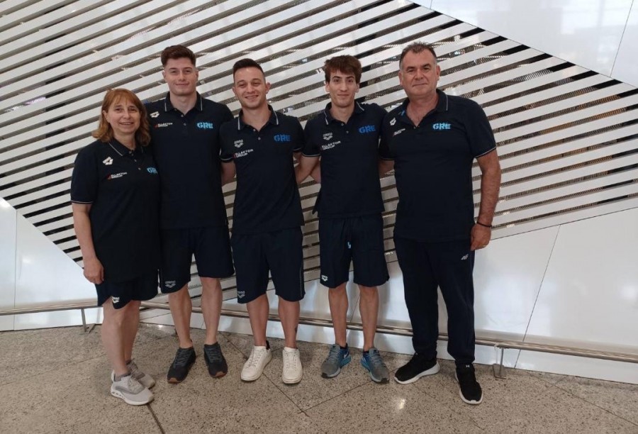 Με την Εθνική Ομάδα Καταδύσεων «πέταξαν» οι πρωταθλητές Θεόφιλος Αυθίνος, Νίκος Μόλβαλης, και Θάνος Τσιρίκος, με την έφορο καταδύσεων, Πέπη Χαραλάμπους, και τον προπονητή Πέτρο Φυρίγο.