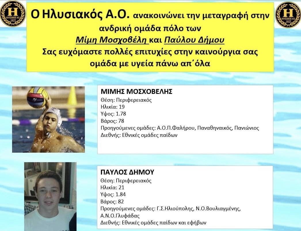 Την απόκτηση τεσσάρων νέων παικτών ανακοίνωσε ο νεοφώτιστος στην Α1 κατηγορία των ανδρών Ηλυσιακός.