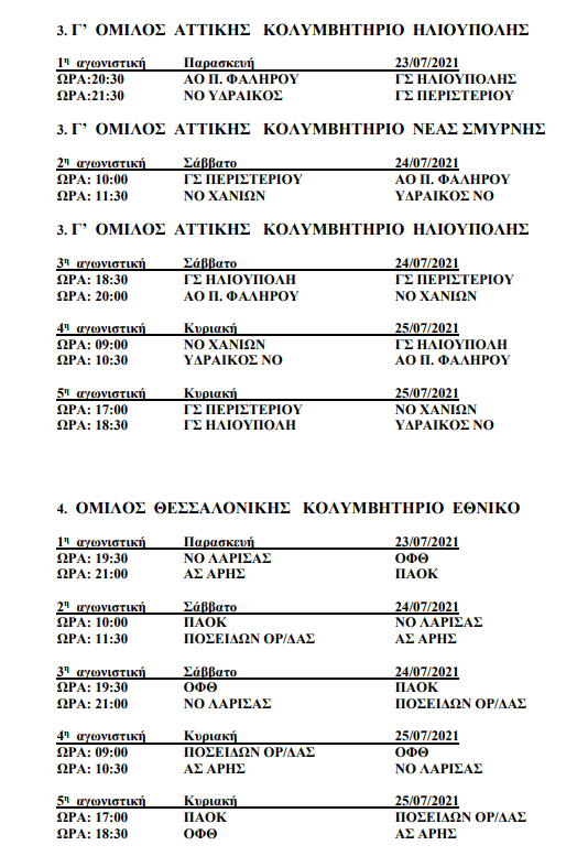 Γ’ ΟΜΙΛΟΣ ΑΤΤΙΚΗΣ (Δημοτικά Ηλιούπολης & Νέας Σμύρνης): ΝΟ Χανίων, Υδραϊκός, ΑΟ Παλαιού Φαλήρου, ΓΣ Ηλιούπολης, ΓΣ Περιστερίου