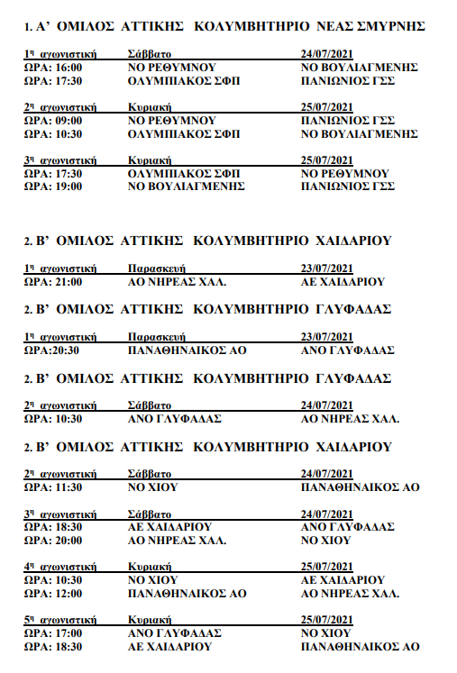 Β’ ΟΜΙΛΟΣ ΑΤΤΙΚΗΣ (Δημοτικό Χαϊδαρίου & «Αντώνης Δημητρόπουλος»): ΝΟ Χίου, Παναθηναϊκός, Νηρέας Χαλανδρίου, ΑΕ Χαϊδαρίου, ΑΝΟ Γλυφάδας