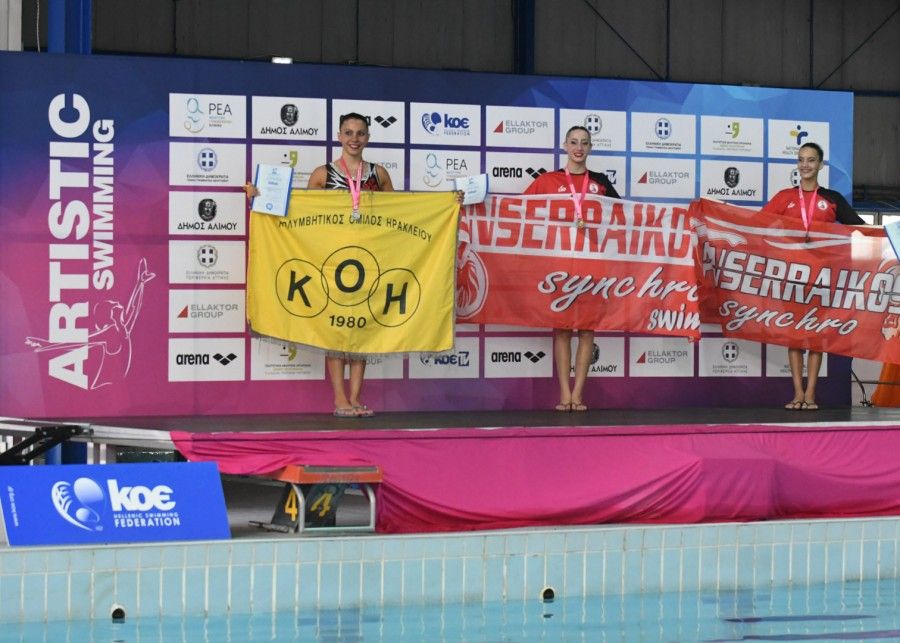 Ο ΚΟ Ηρακλείου κατέκτησε τον τίτλο του πρωταθλητή και πολυνίκη στο Πανελλήνιο πρωτάθλημα Καλλιτεχνικής Κολύμβησης Κορασίδων Α', που ολοκληρώθηκε την Κυριακή (10/7) στο Εθνικό Κολυμβητήριο Πειραιά. Στους τελικούς της τρίτης και τελευταίας ημέρας των αγώνων, εξάλλου, τα χρυσά μετάλλια πήραν στο Κόμπο ο ΚΟΗ (το δεύτερό του χρυσό μετά το Ομαδικό) και στο Σόλο η Θάλεια Δάμπαλη του Πανσερραϊκού (το δεύτερό της χρυσό, μετά το Ντουέτο).
